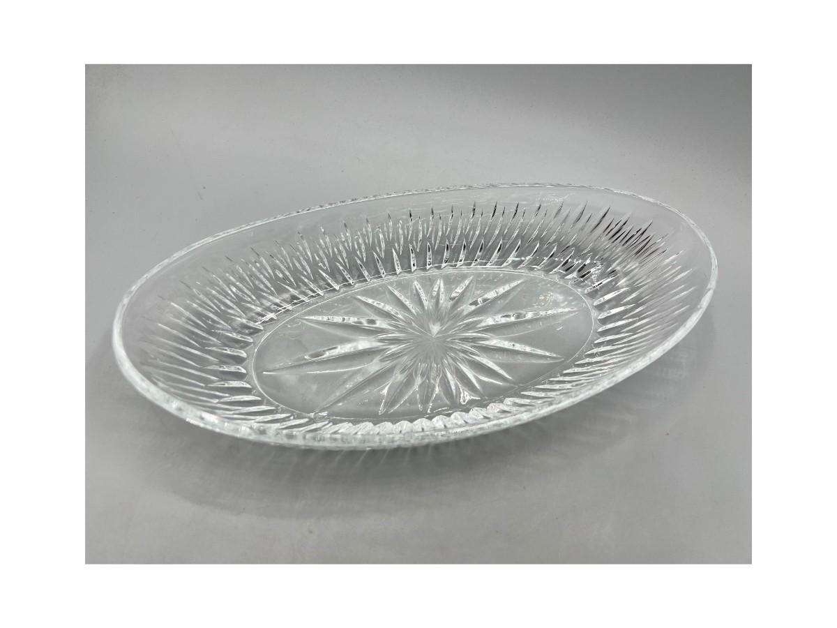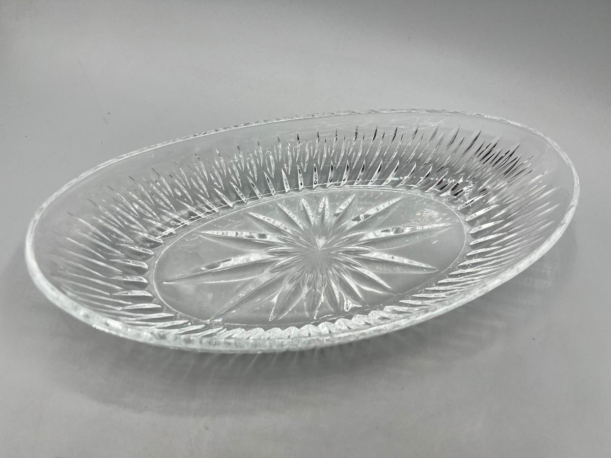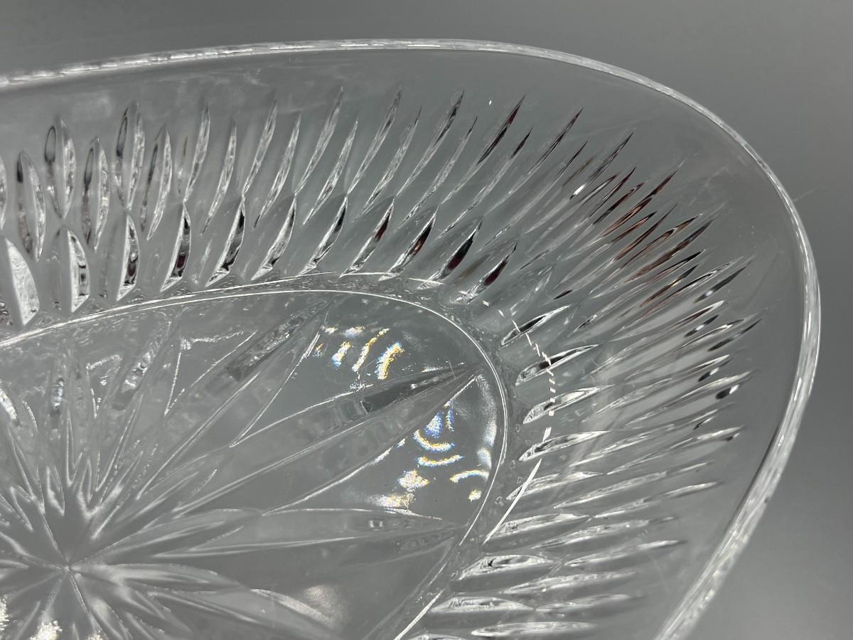 Retro Lead Crystal Glass Ribbed Patteren Boat Dish