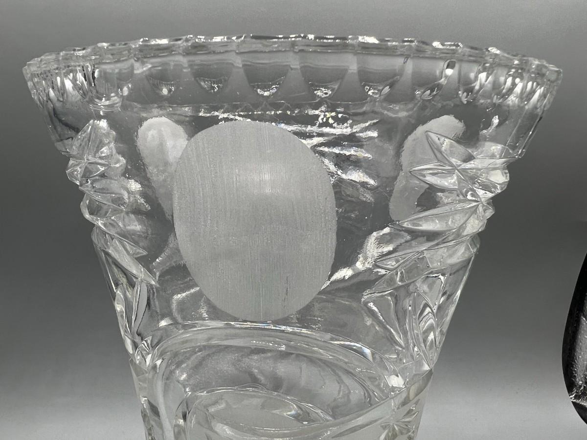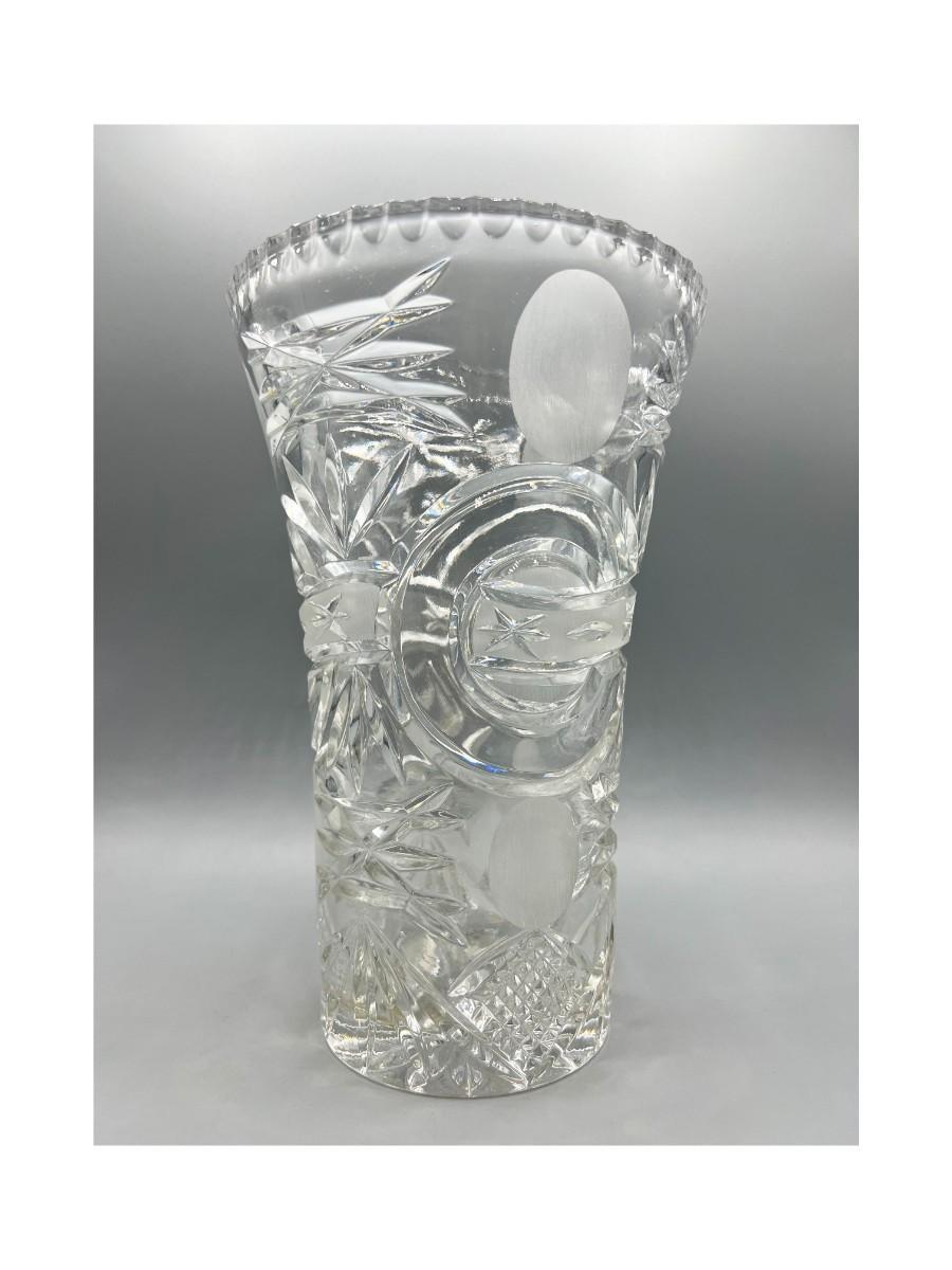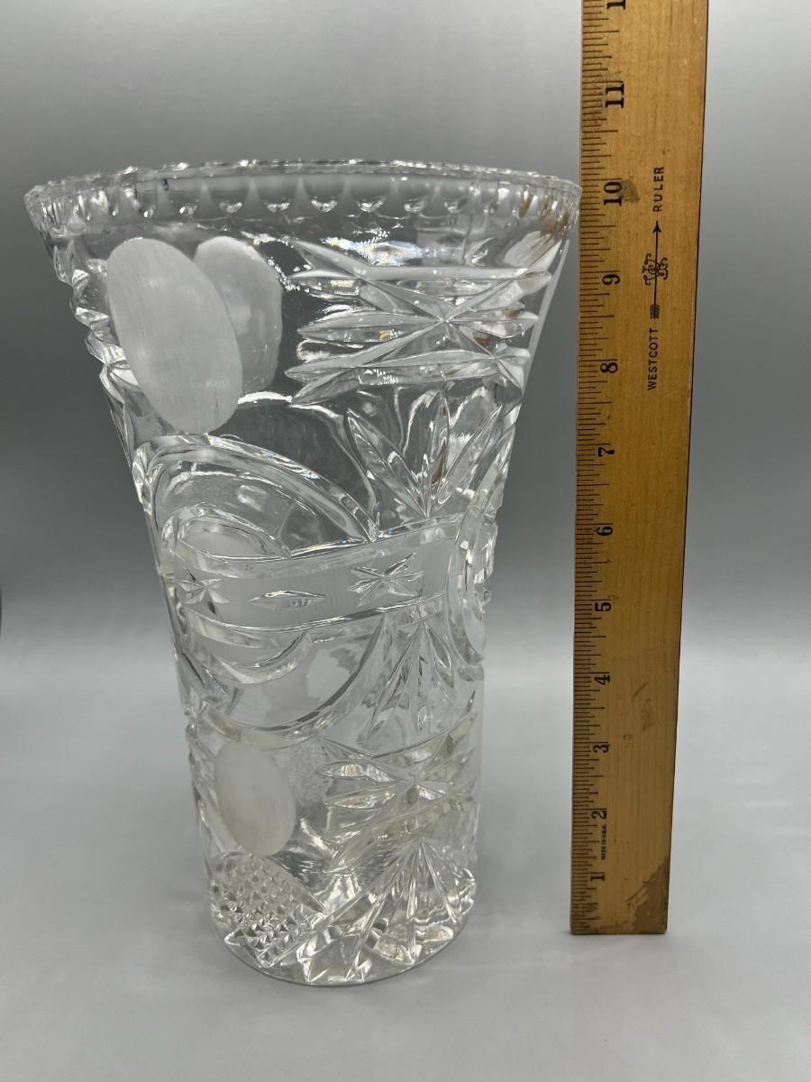 Retro Lead Crystal Glass Thick Heavy Etched Vase