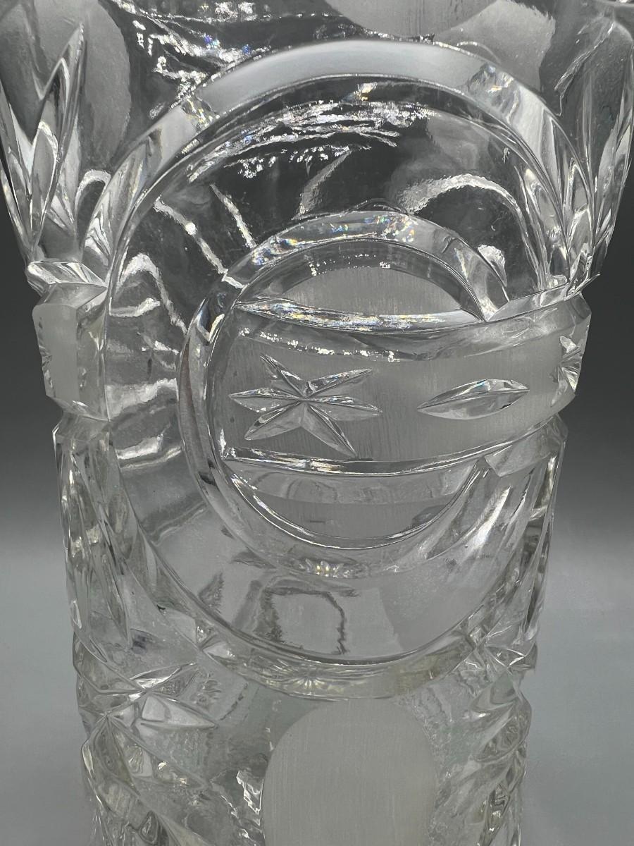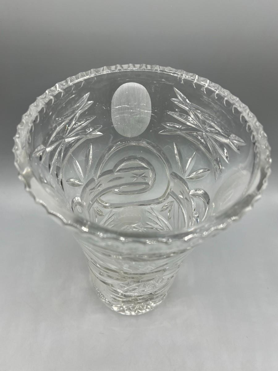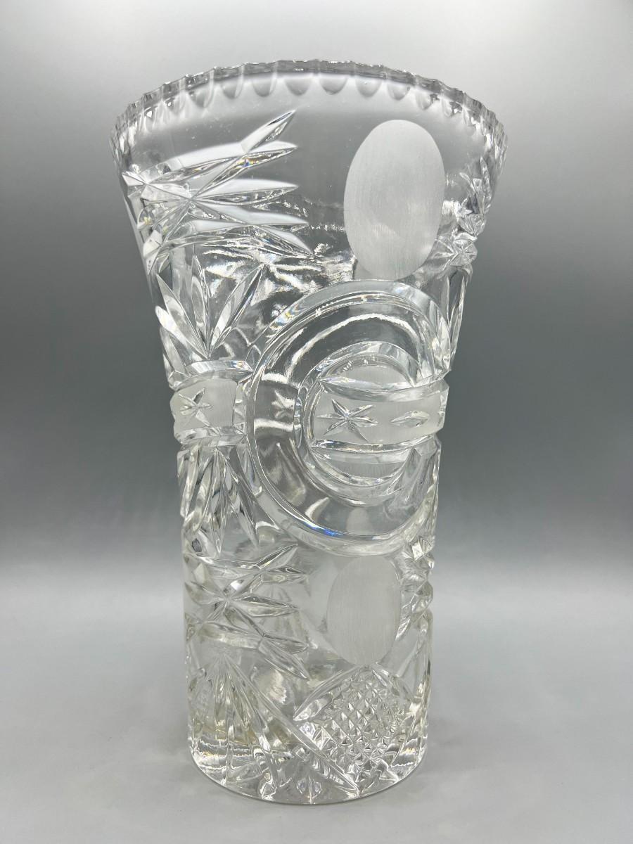 Retro Lead Crystal Glass Thick Heavy Etched Vase