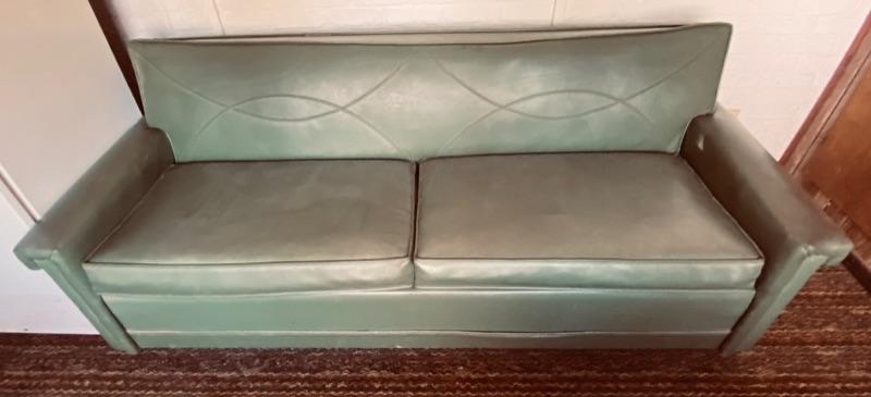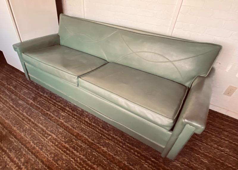 Retro Green Leather Sofa w/ Hide-a-Bed