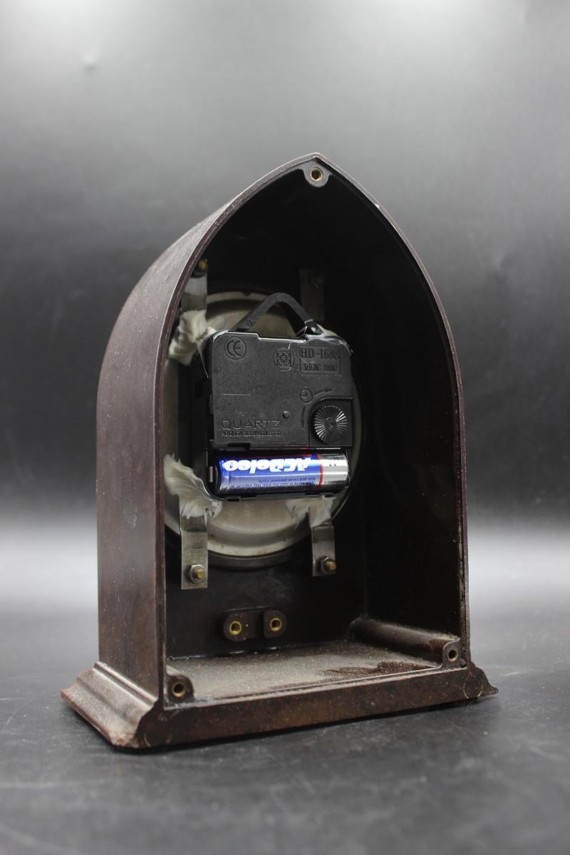 Retro Lincoln Electric Battery Operated Cathedral Clock, there is no significant damage to the clock and is in good vintage condition. Has a slight chip to one of the corners of the base, check pictures for more details and for sizing. The clock works perfectly and is running.