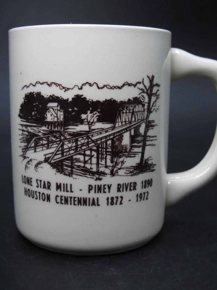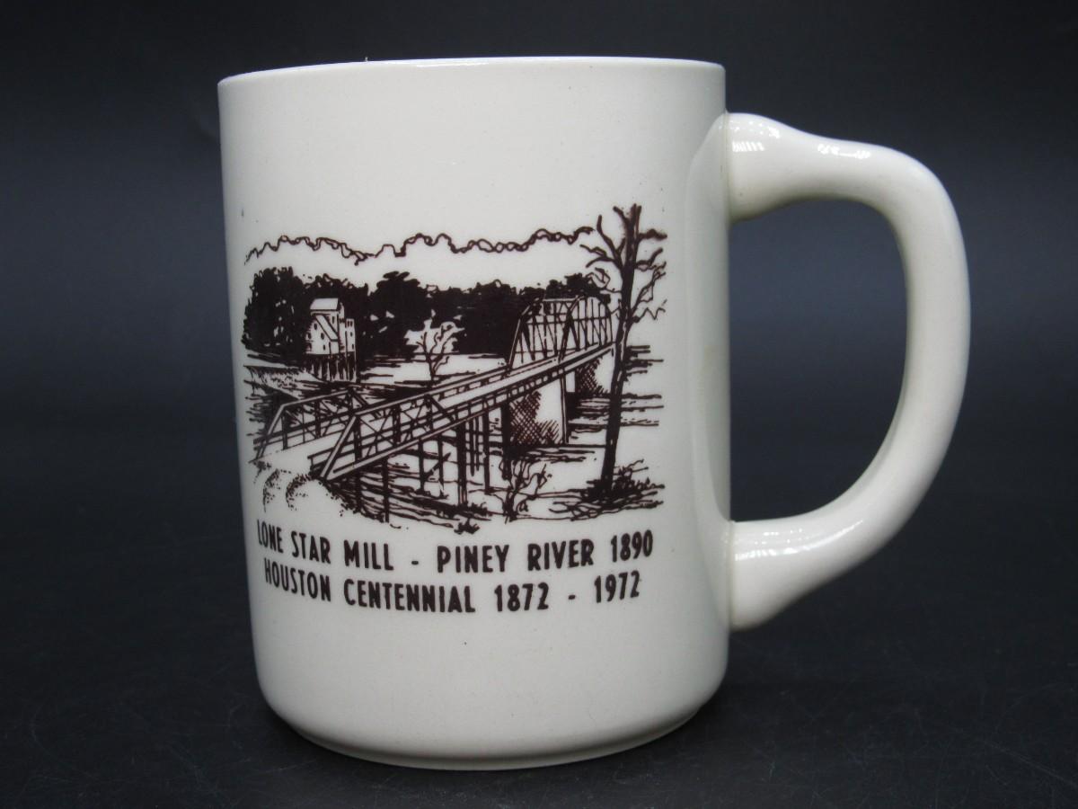 Retro Lone Star Mill Piney River 1890 Houston Centennial Souvenir Coffee Mug USA Pottery Restaurant Ware