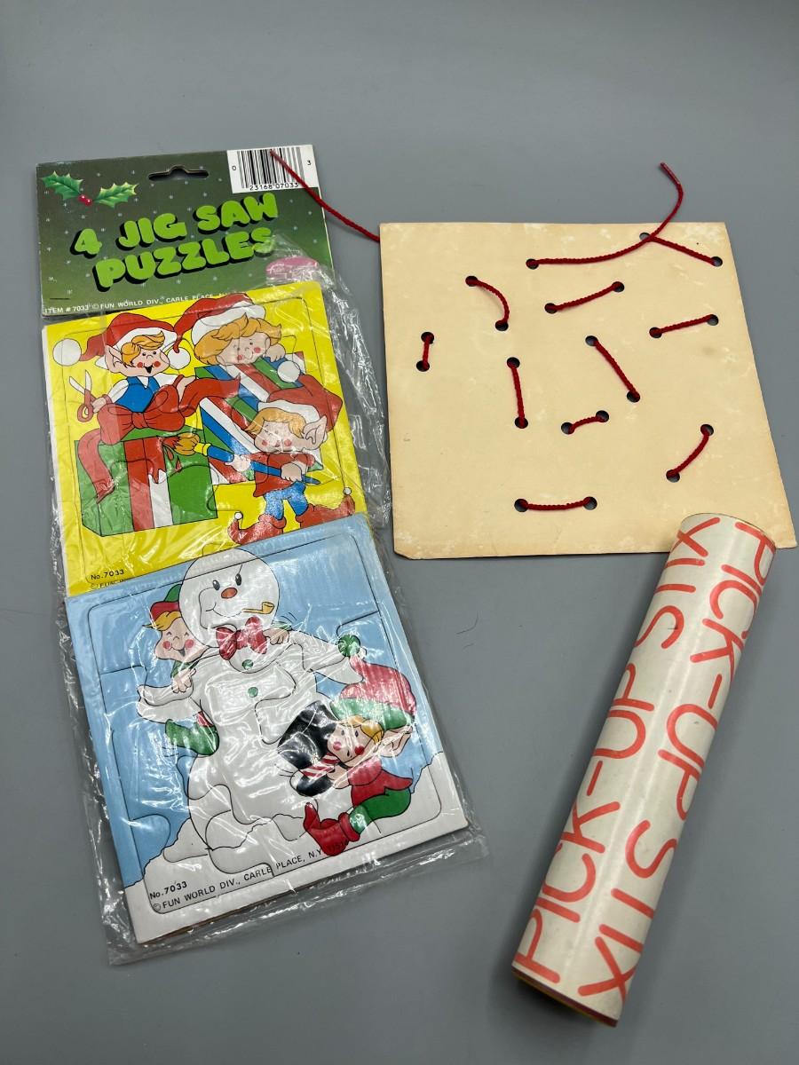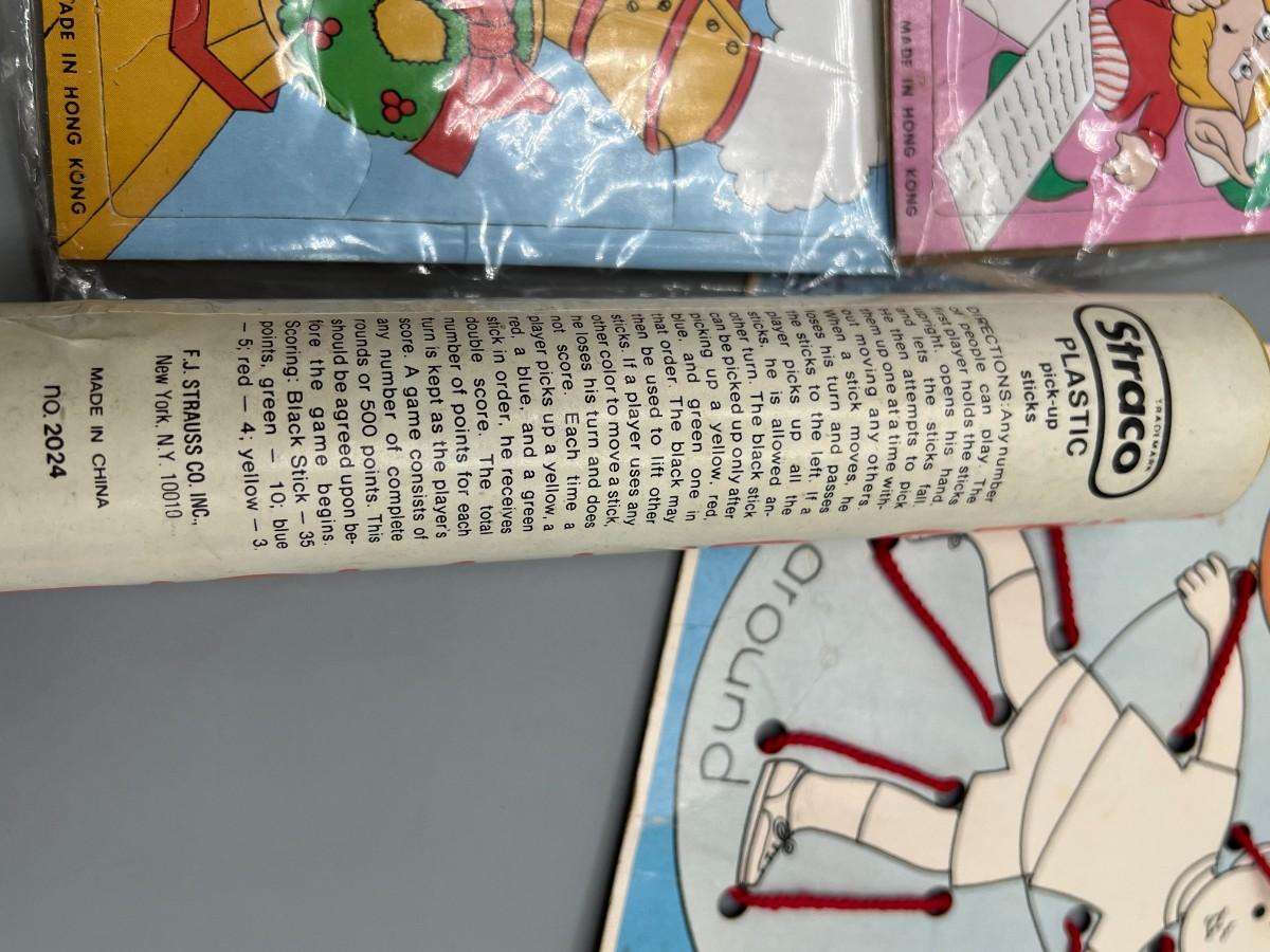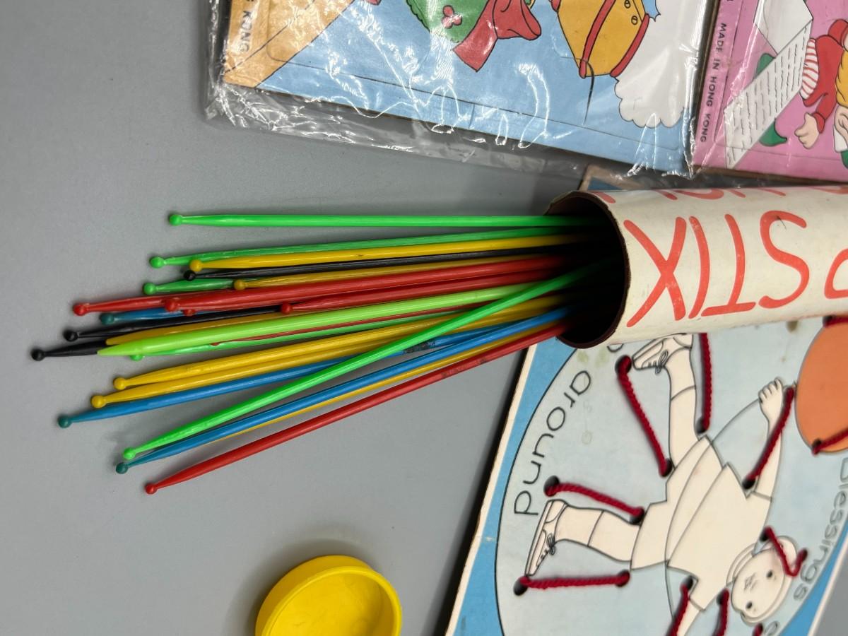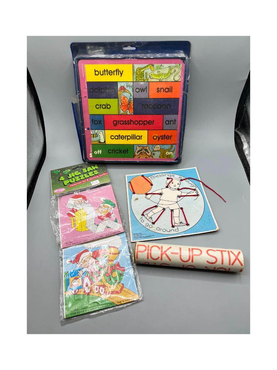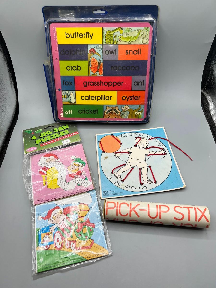 Retro Lot of Children's Games Jigsaw Puzzles, Pick-Up Stix & More