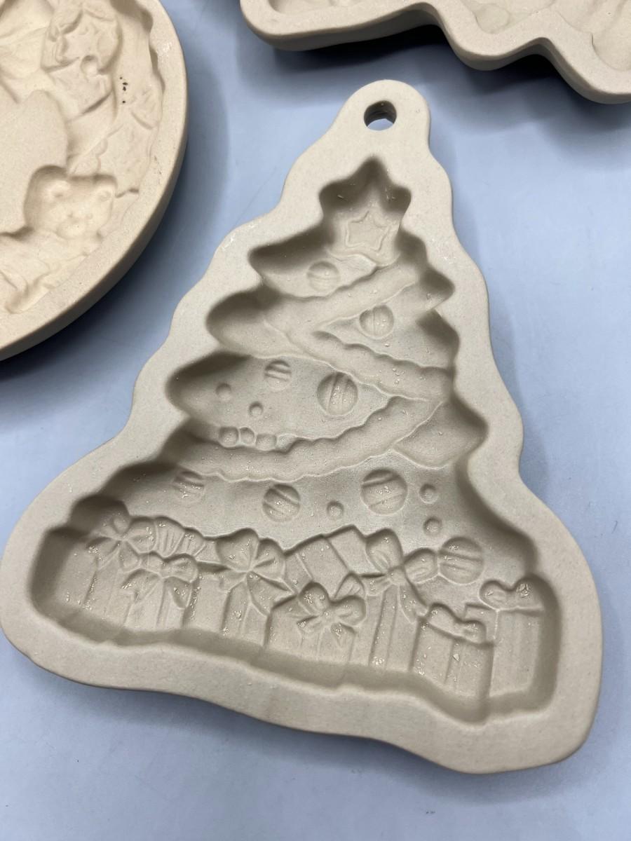 Retro Lot of Enesco Ceramic Pottery Cookie Mold Christmas Holiday Decor Christmas Tree, Santa, & Reef