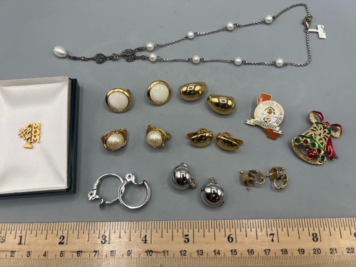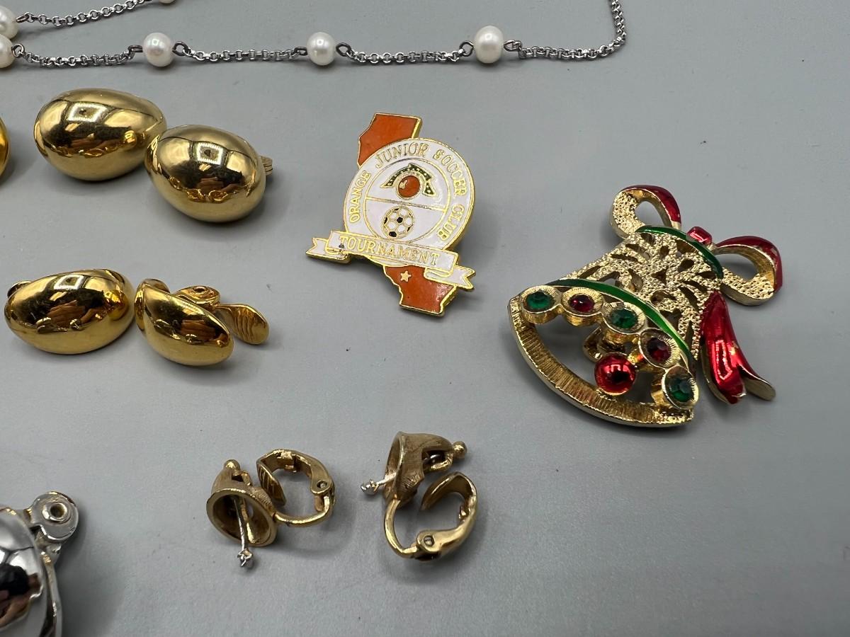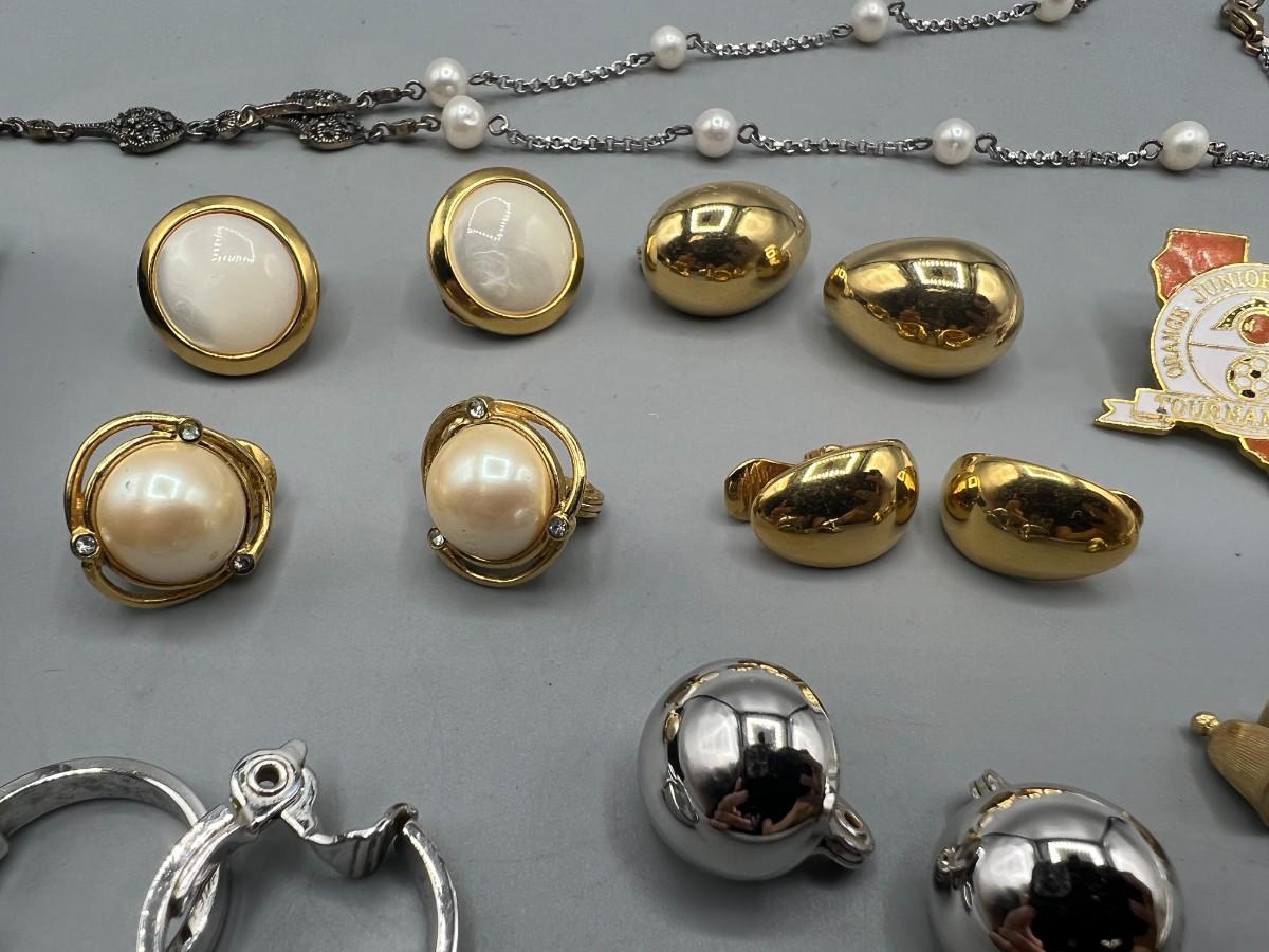 Retro Lot of Fashionable Clip on Earrings Costume Jewelry, Necklace, Pins & More