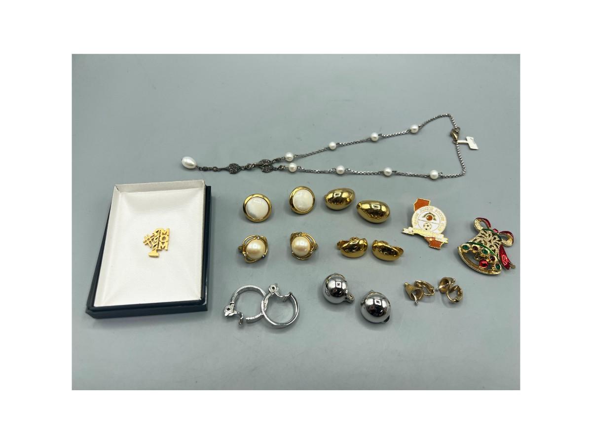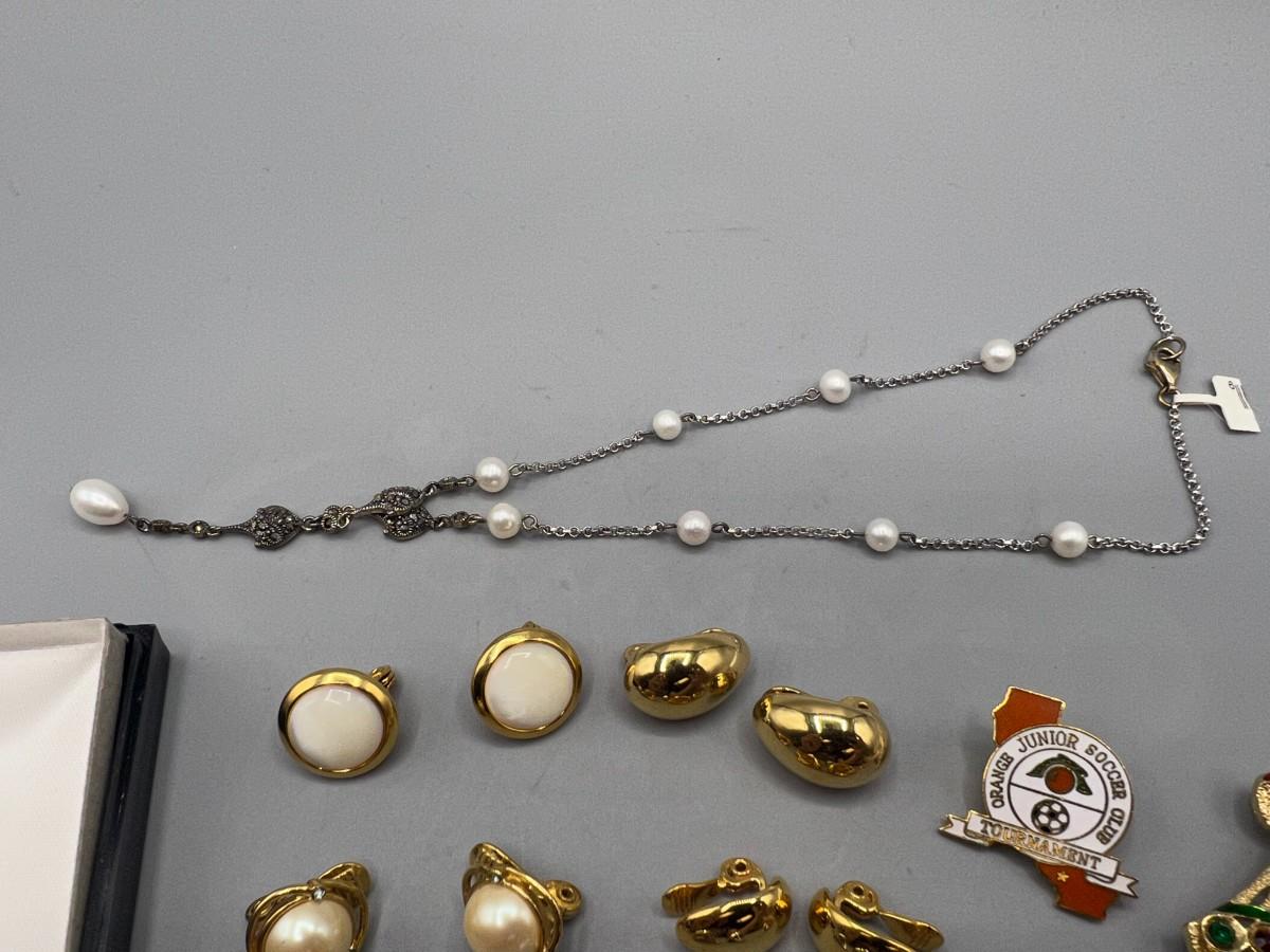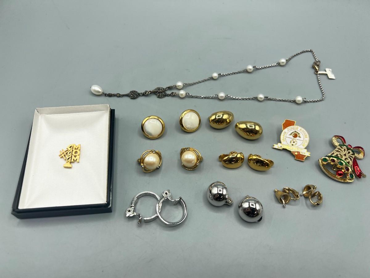Retro Lot of Fashionable Clip on Earrings Costume Jewelry, Necklace, Pins & More