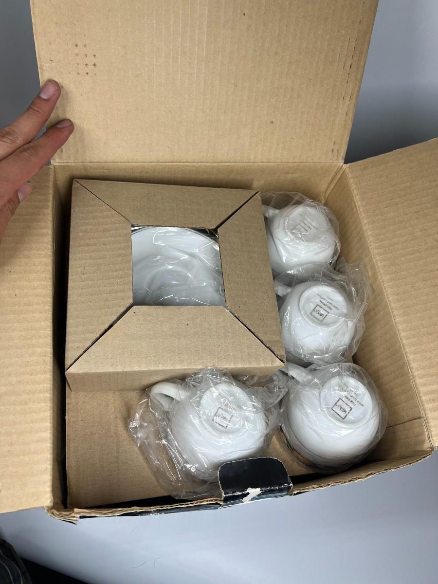 The lot comes with 3 complete sets, there might be some light chips on some of the ceramic pieces, but most of the pieces are wrapped/packed and in good useable conditon. Check pictures for more details and for sizing.