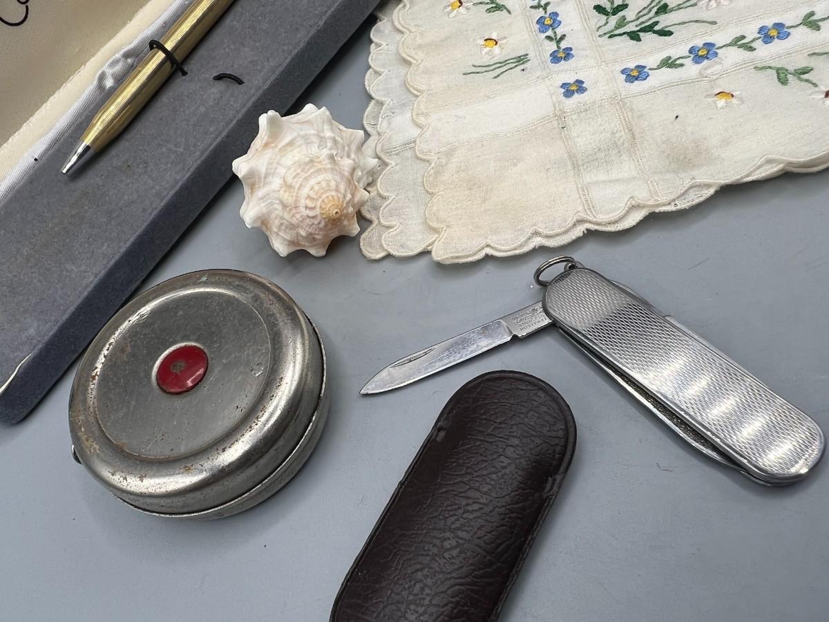 Retro Lot of Miscellaneous Trinkets Tape Measure, Pocket Knife, and More