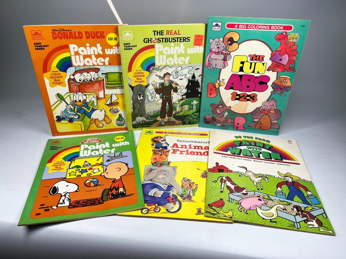 Retro Lot of Paint With Water Books & Coloring Books Ghostbusters, Charlie Brown, & More