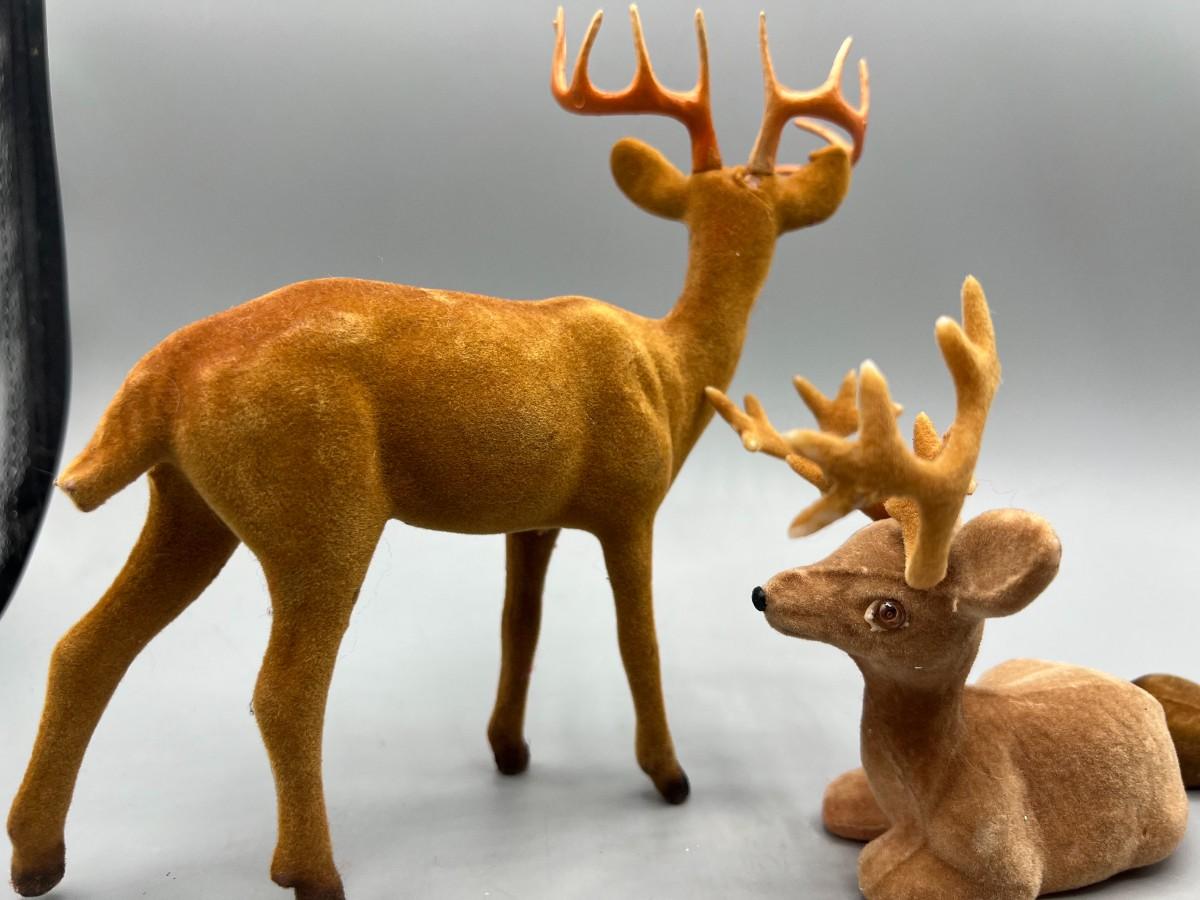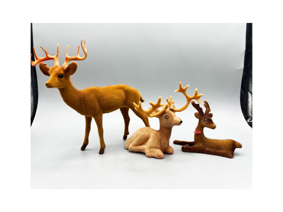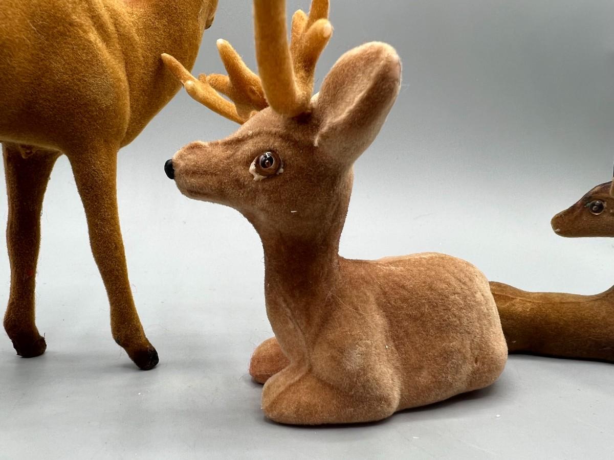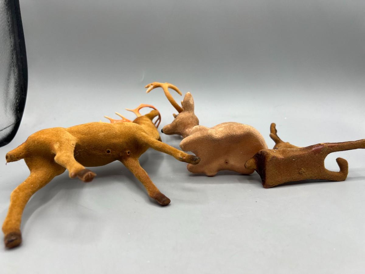Retro Lot of Plastic Soft Felt Wild Reindeer Figurines