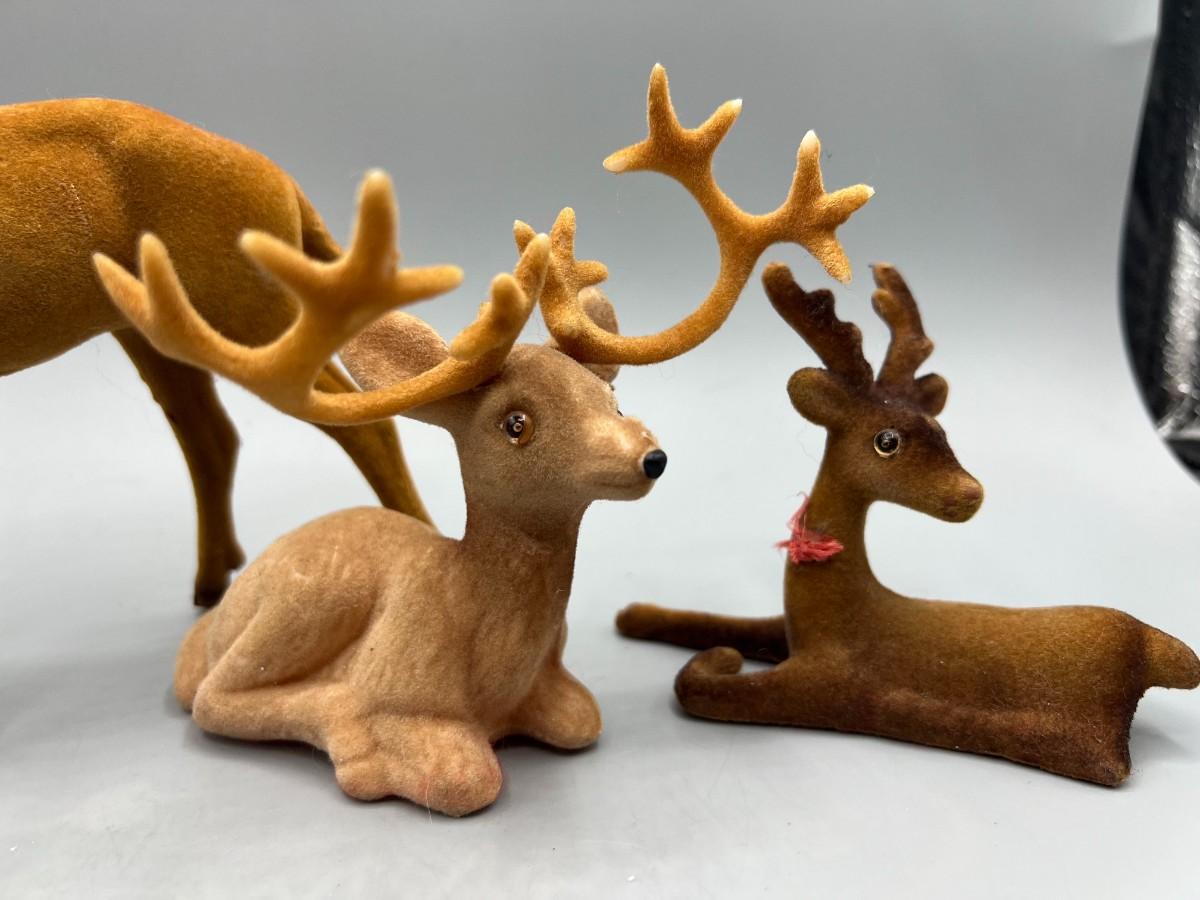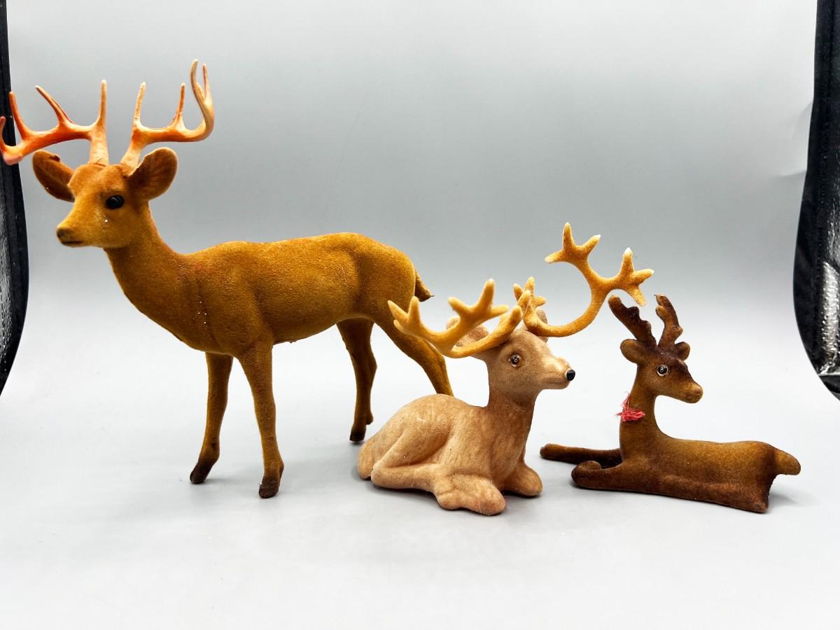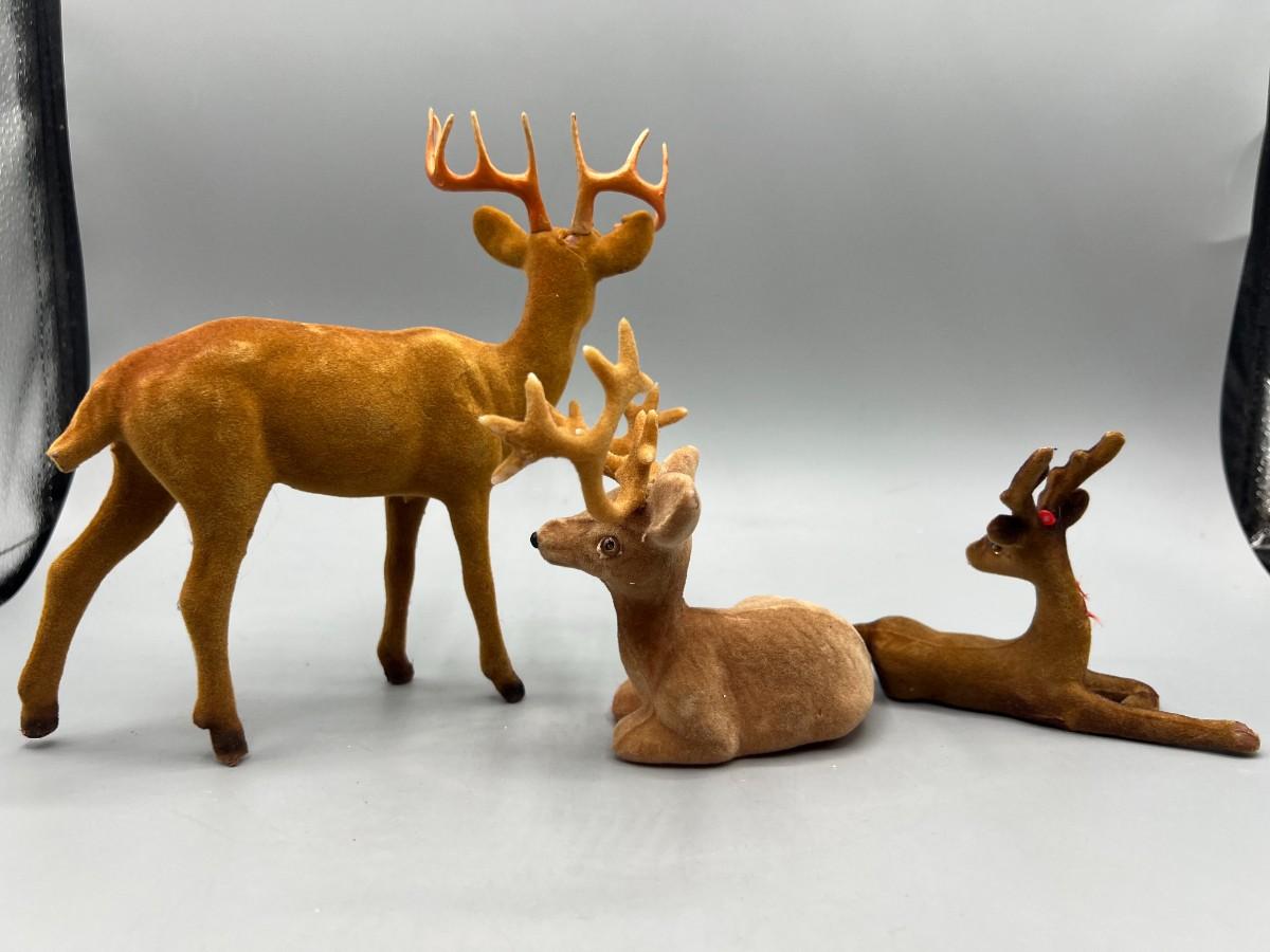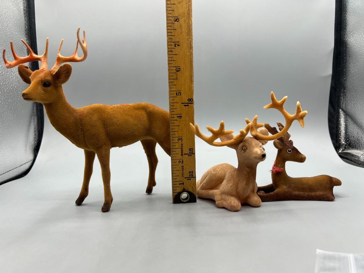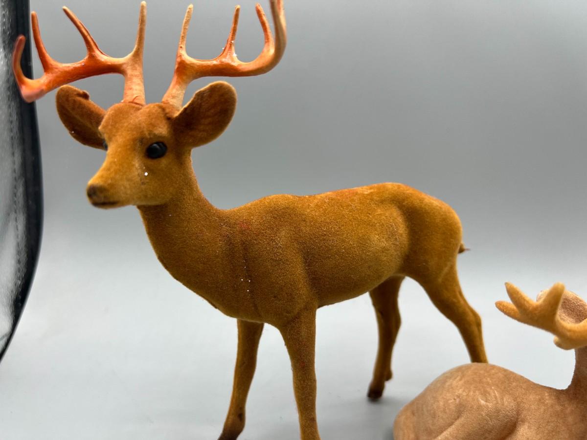 Retro Lot of Plastic Soft Felt Wild Reindeer Figurines