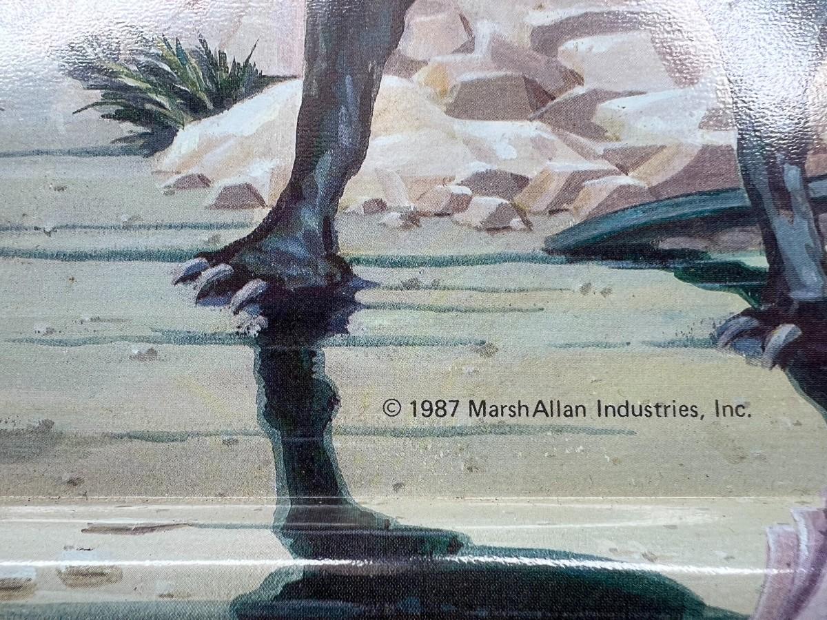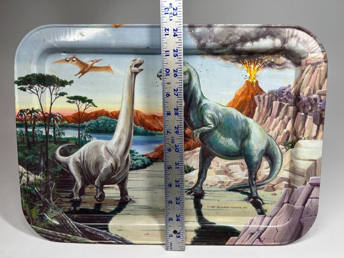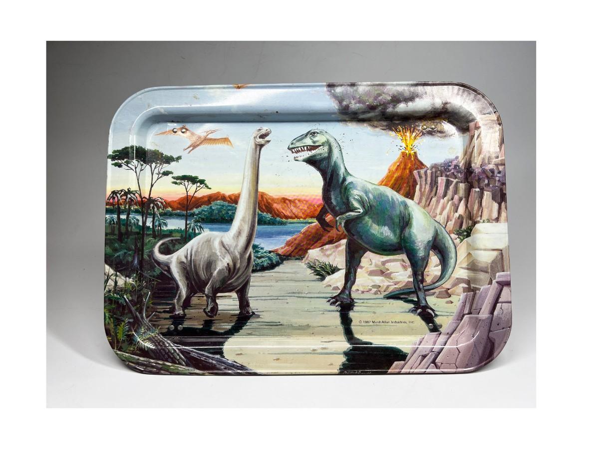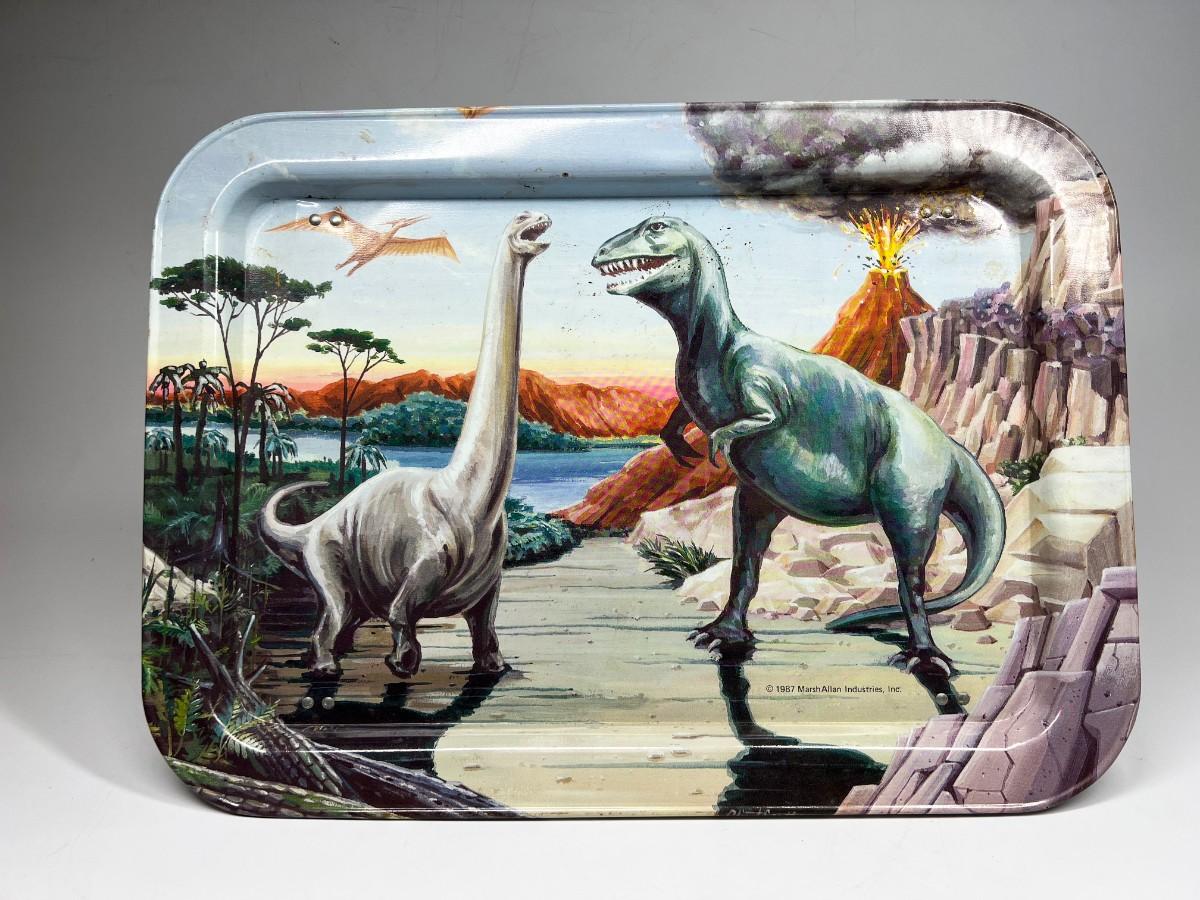 Retro Marsh Allan Dinosaur T-Rex Volcano TV Lap Metal Tray