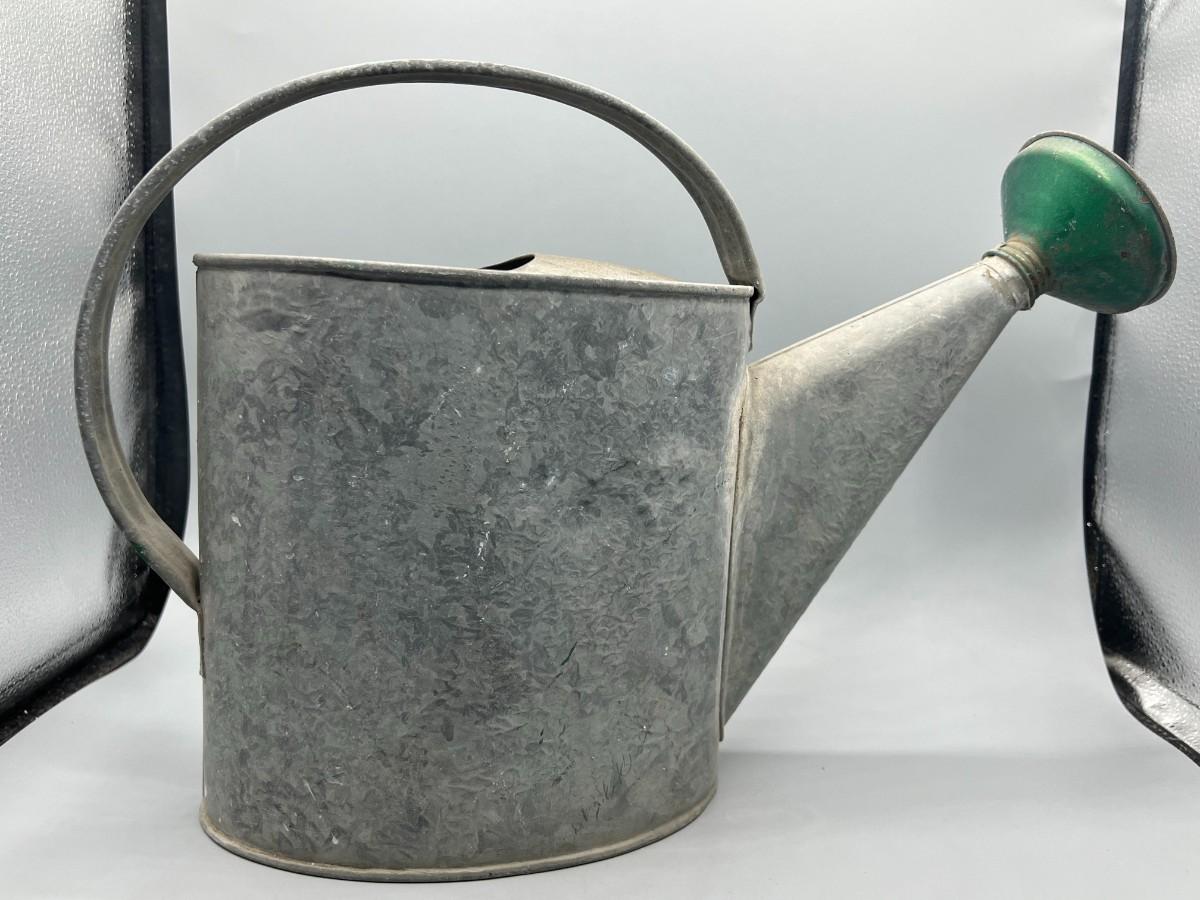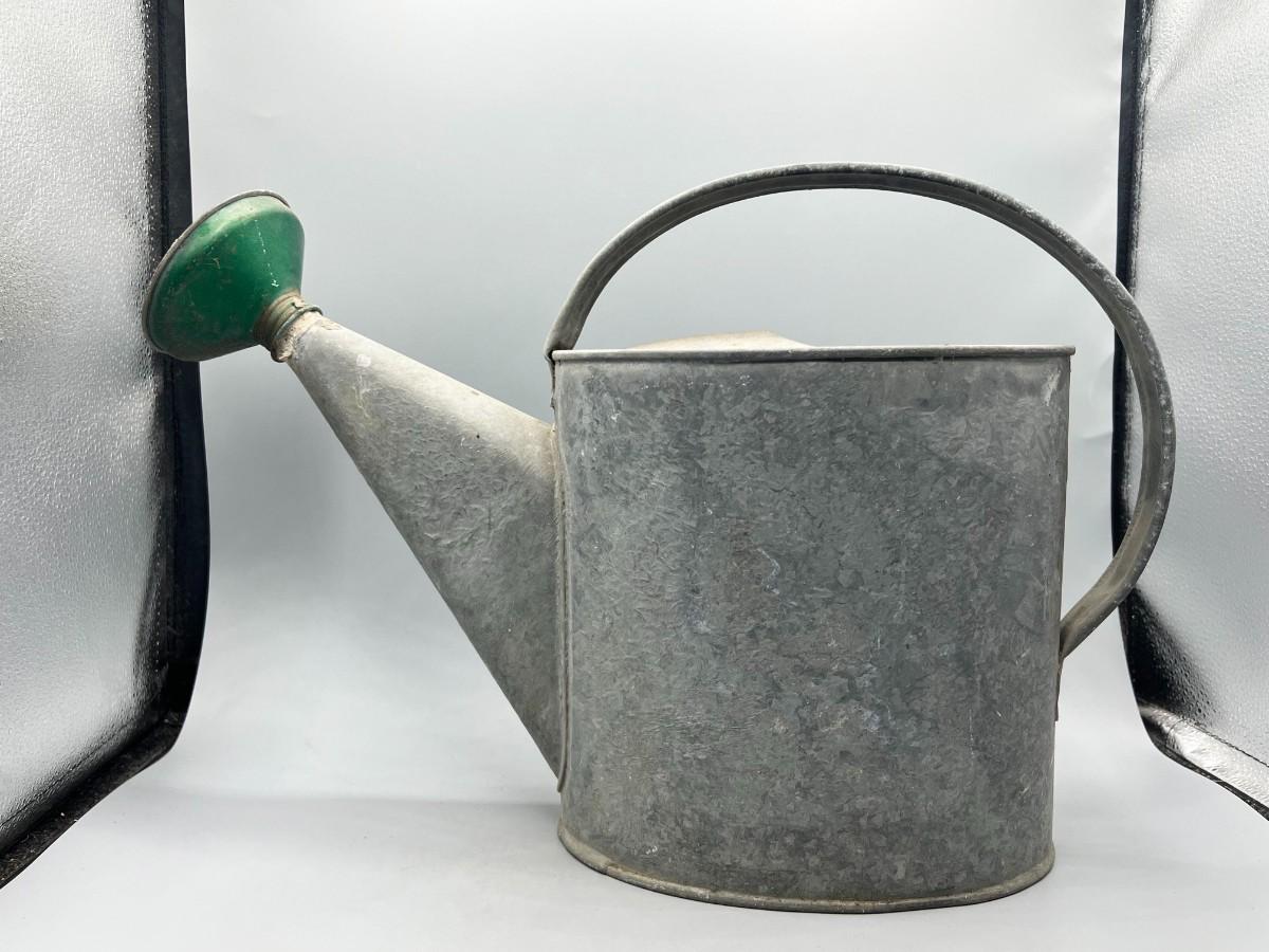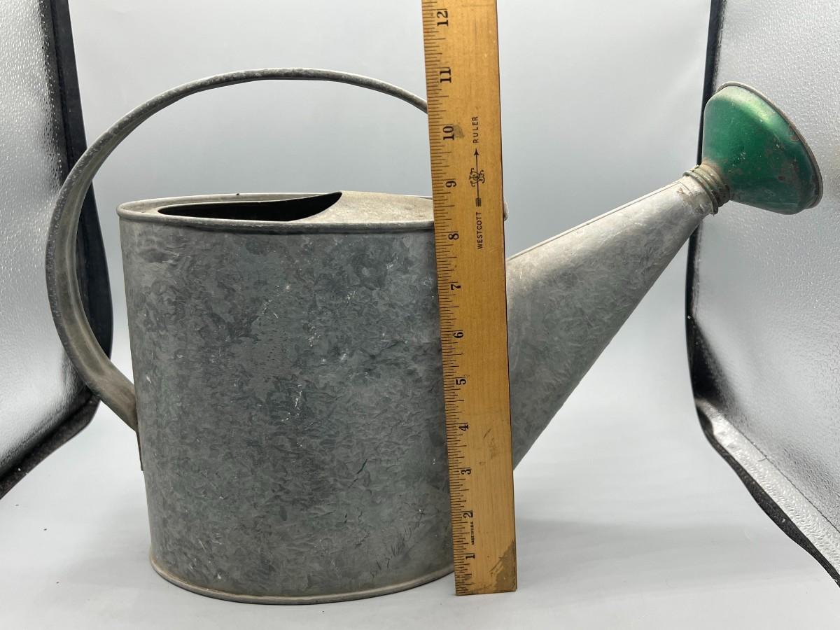 There is some wear to the watering can, but there is no significant damage and is in overall good useable or displayable condition. Check pictures for more details and for sizing.
