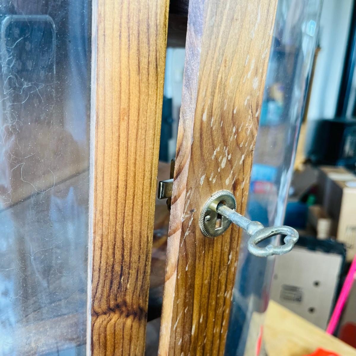 Vintage 1990s. Finish is worn, great piece to paint or restore! Complete with key.