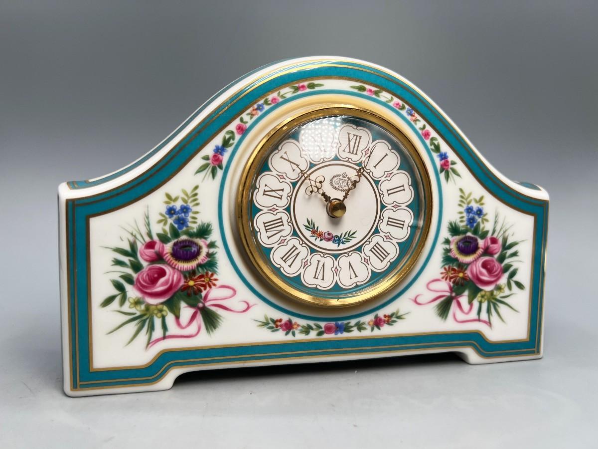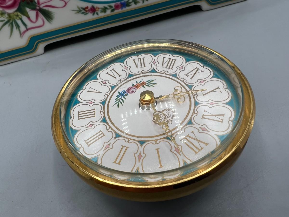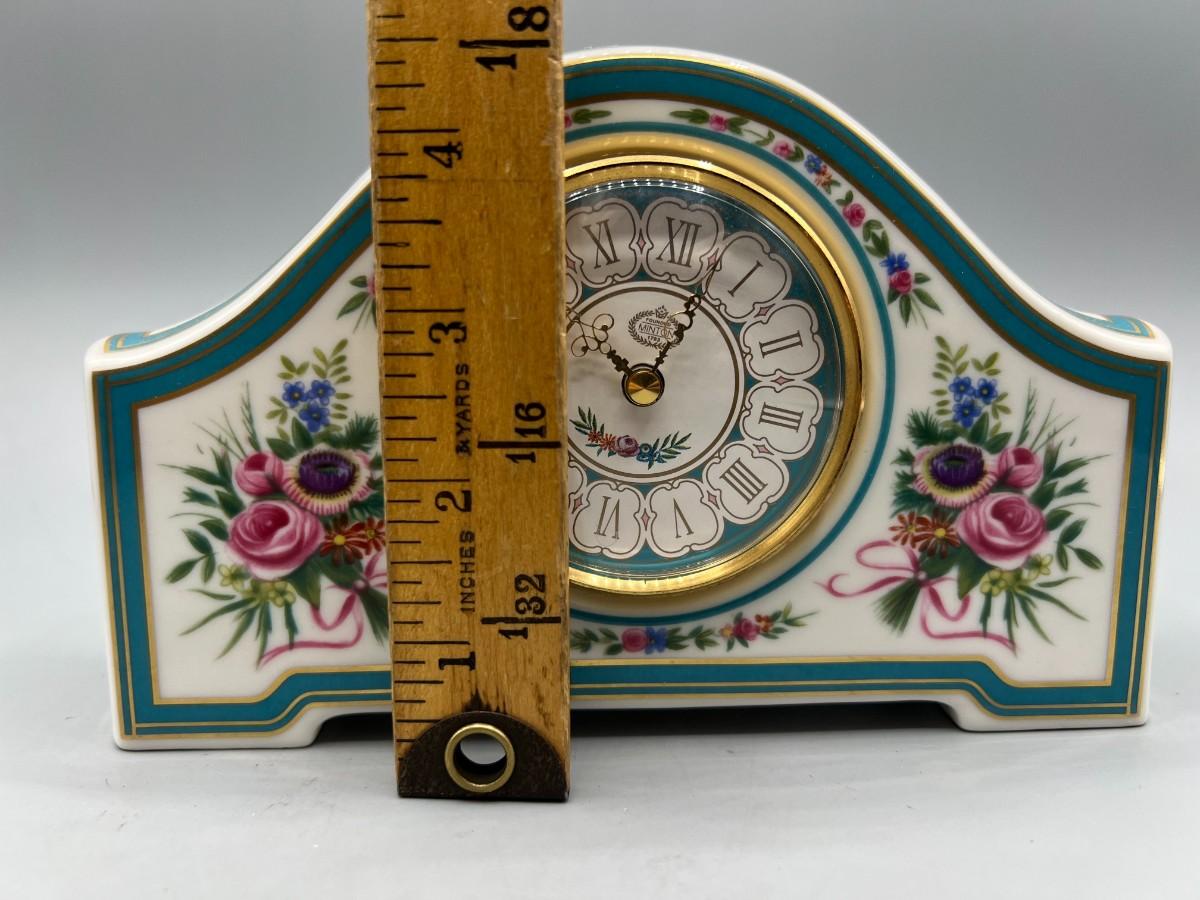 Retro Minton Rose Clock Pink Ribbon Bow Battery Powered Clock