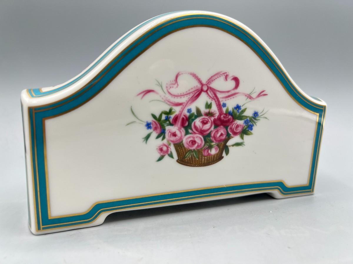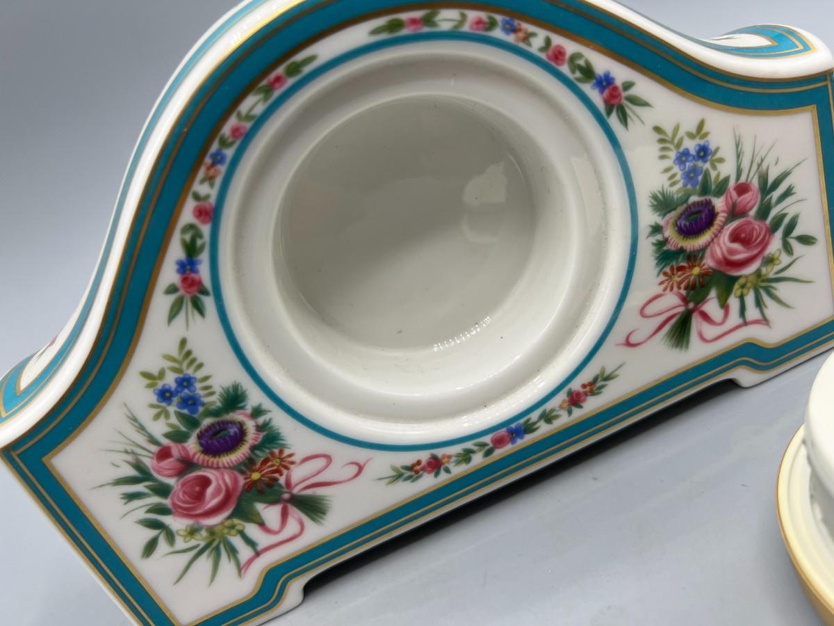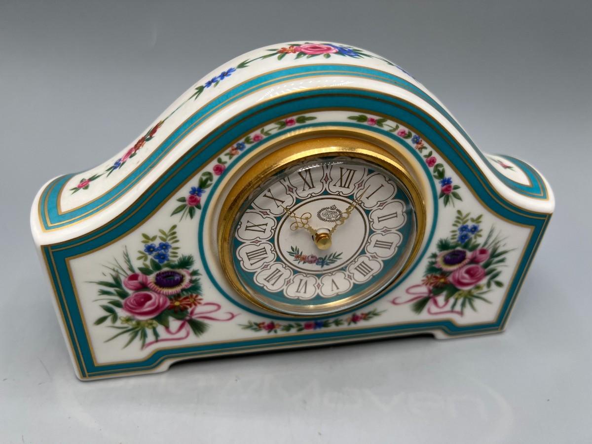 Retro Minton Rose Clock Pink Ribbon Bow Battery Powered Clock