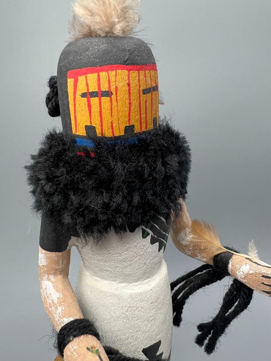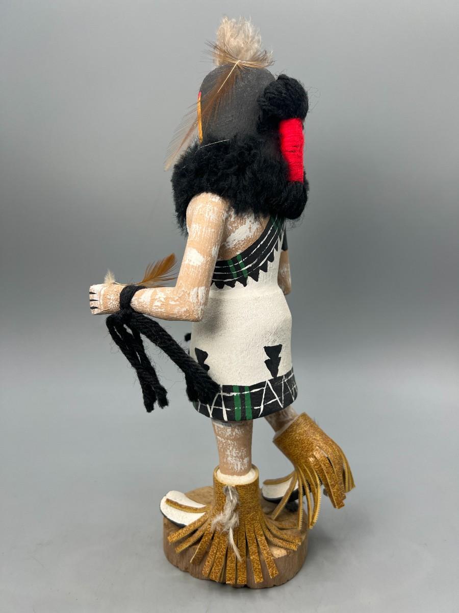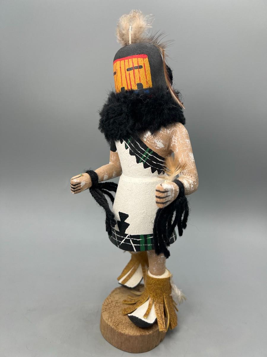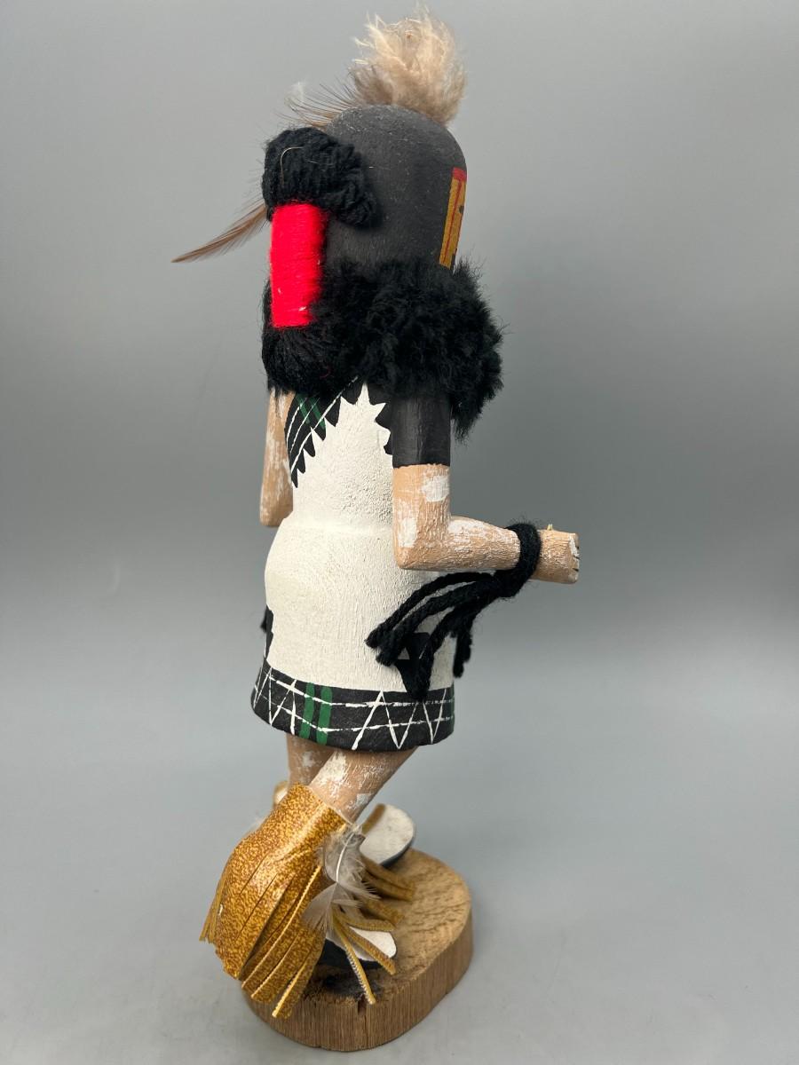 There is no significant damage to the kachina doll and is in overall good displayable or collectible condition. Check pictures for more details and for sizing.