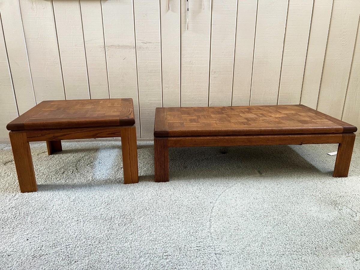 Retro Oak Parque Top End Side Table & Coffee Table
