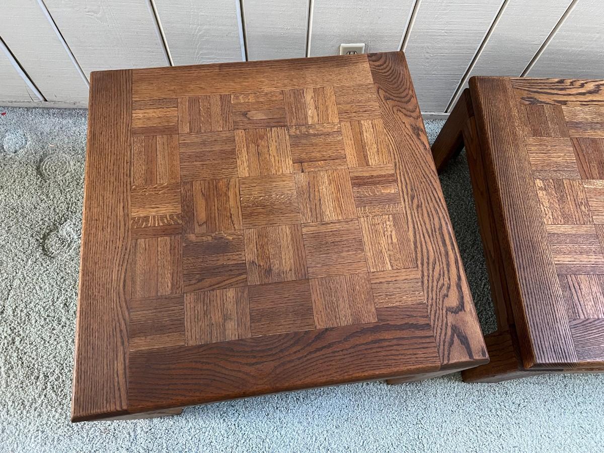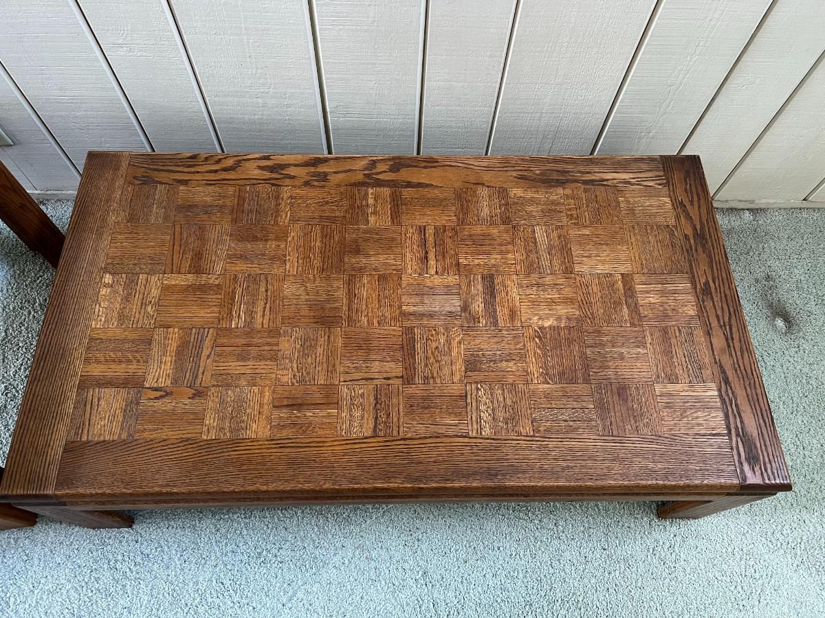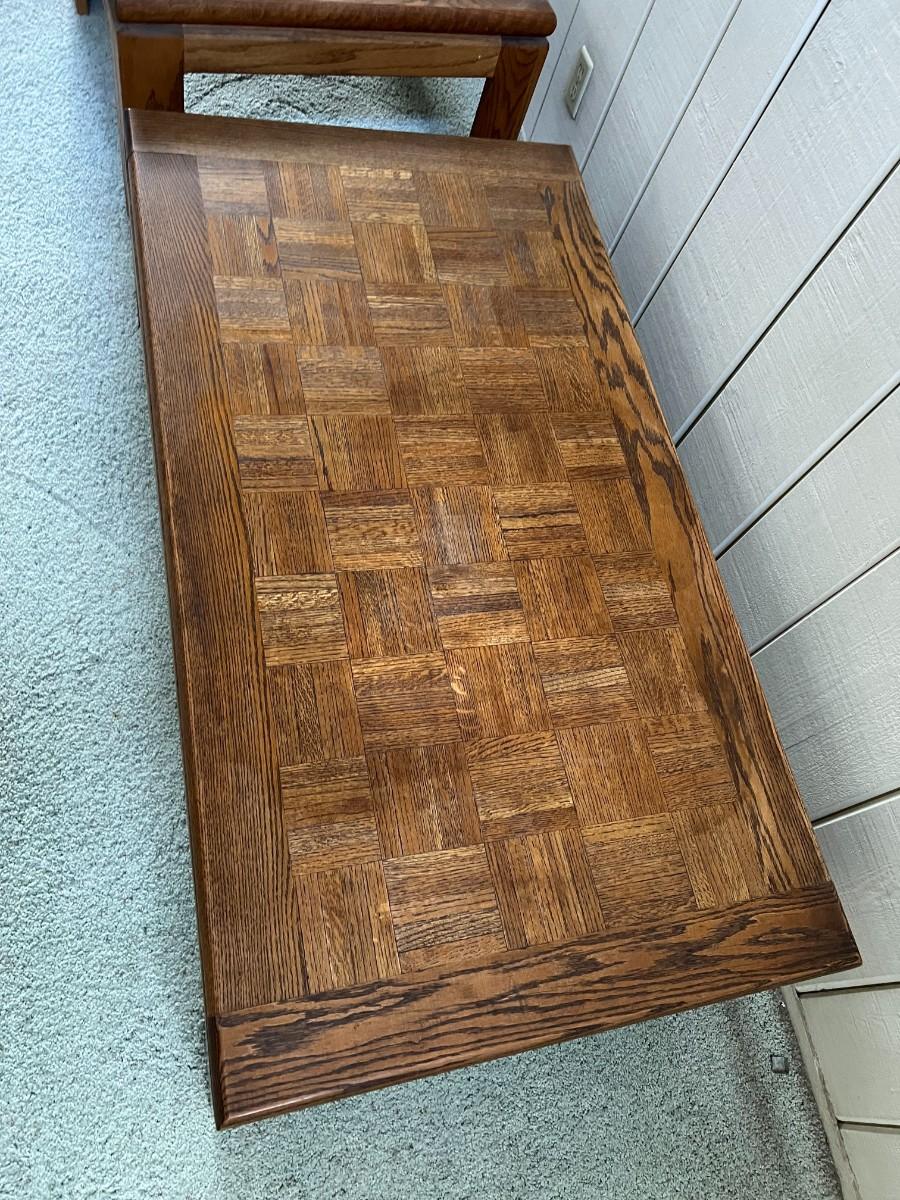Retro Oak Parque Top End Side Table & Coffee Table. In vintage condition.