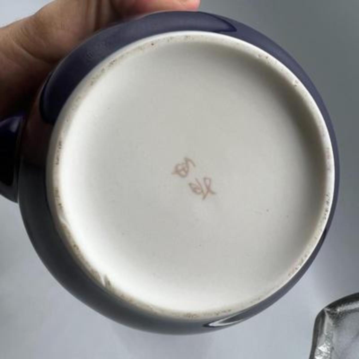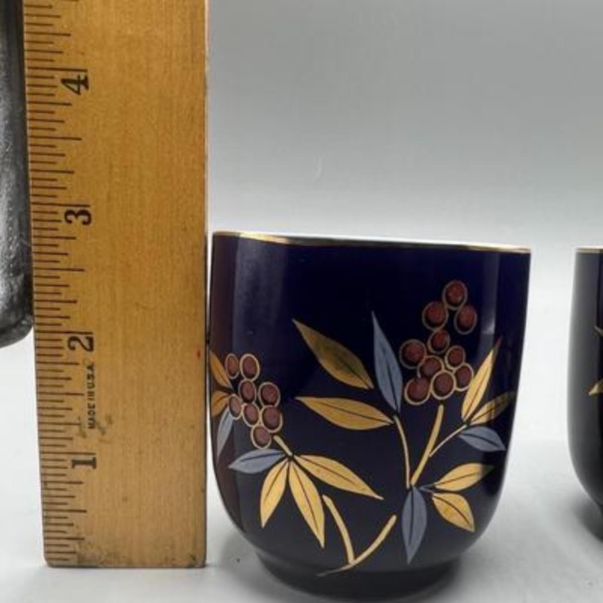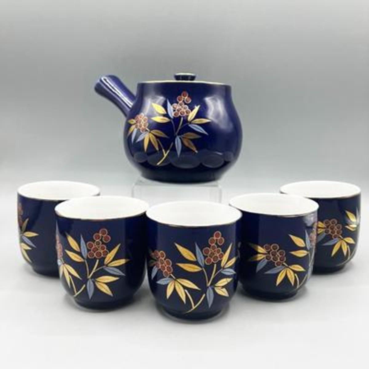 Retro Oriental Pottery Blue Handle Filtered Teapot & Teacup Set