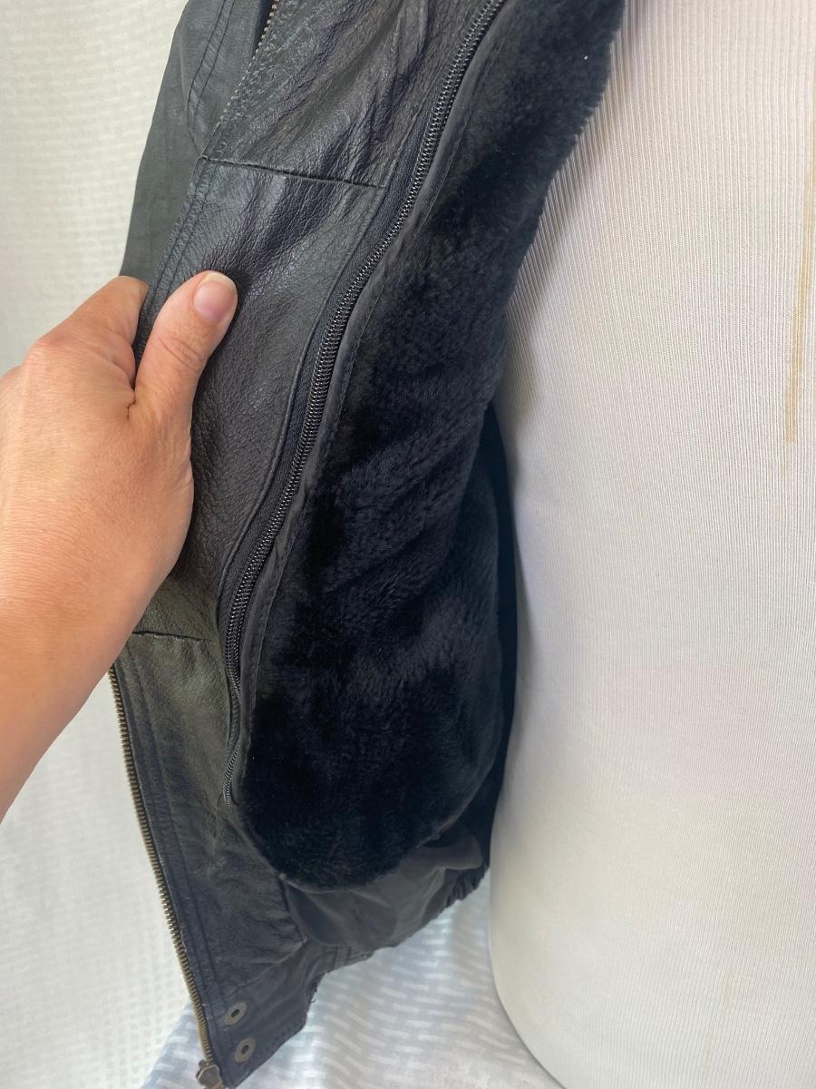 Retro Oscar Piel Black Leather Bomber Flight Jacket Size Medium. Good worn condition.