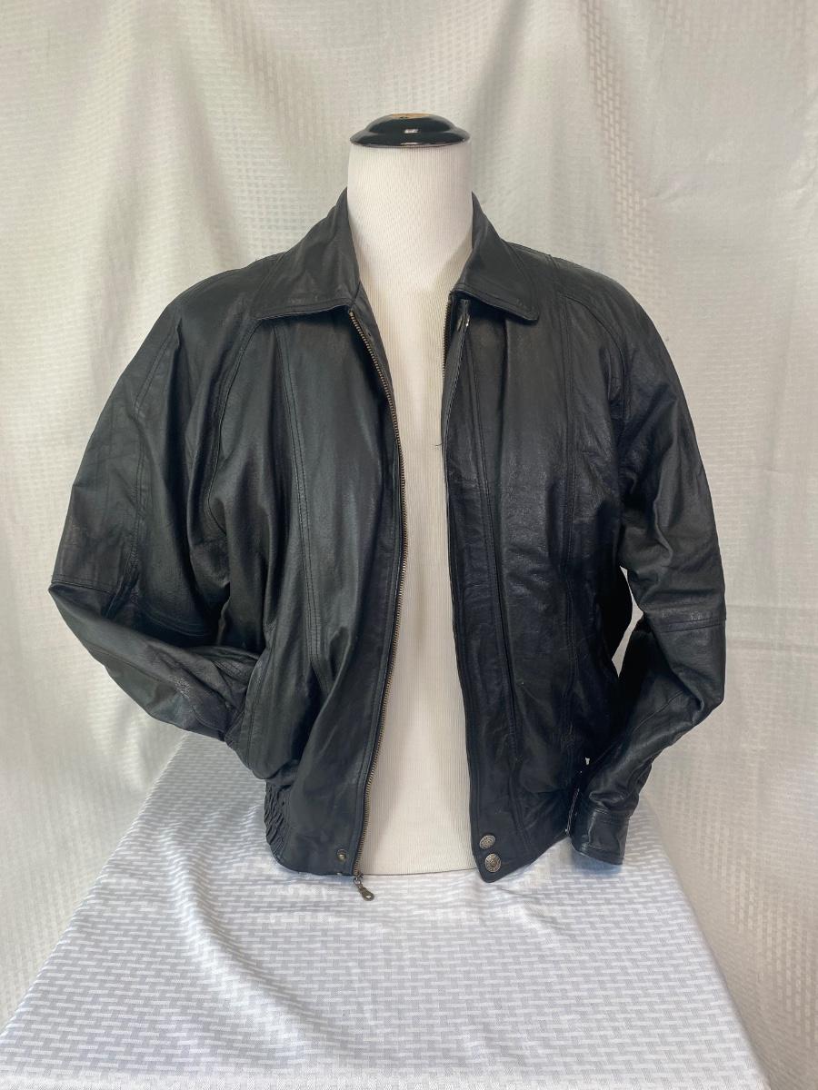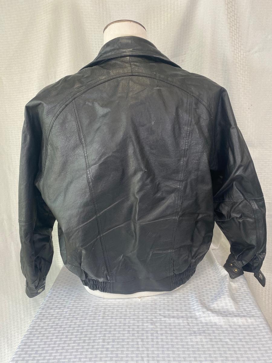 Retro Oscar Piel Black Leather Bomber Flight Jacket Size Medium