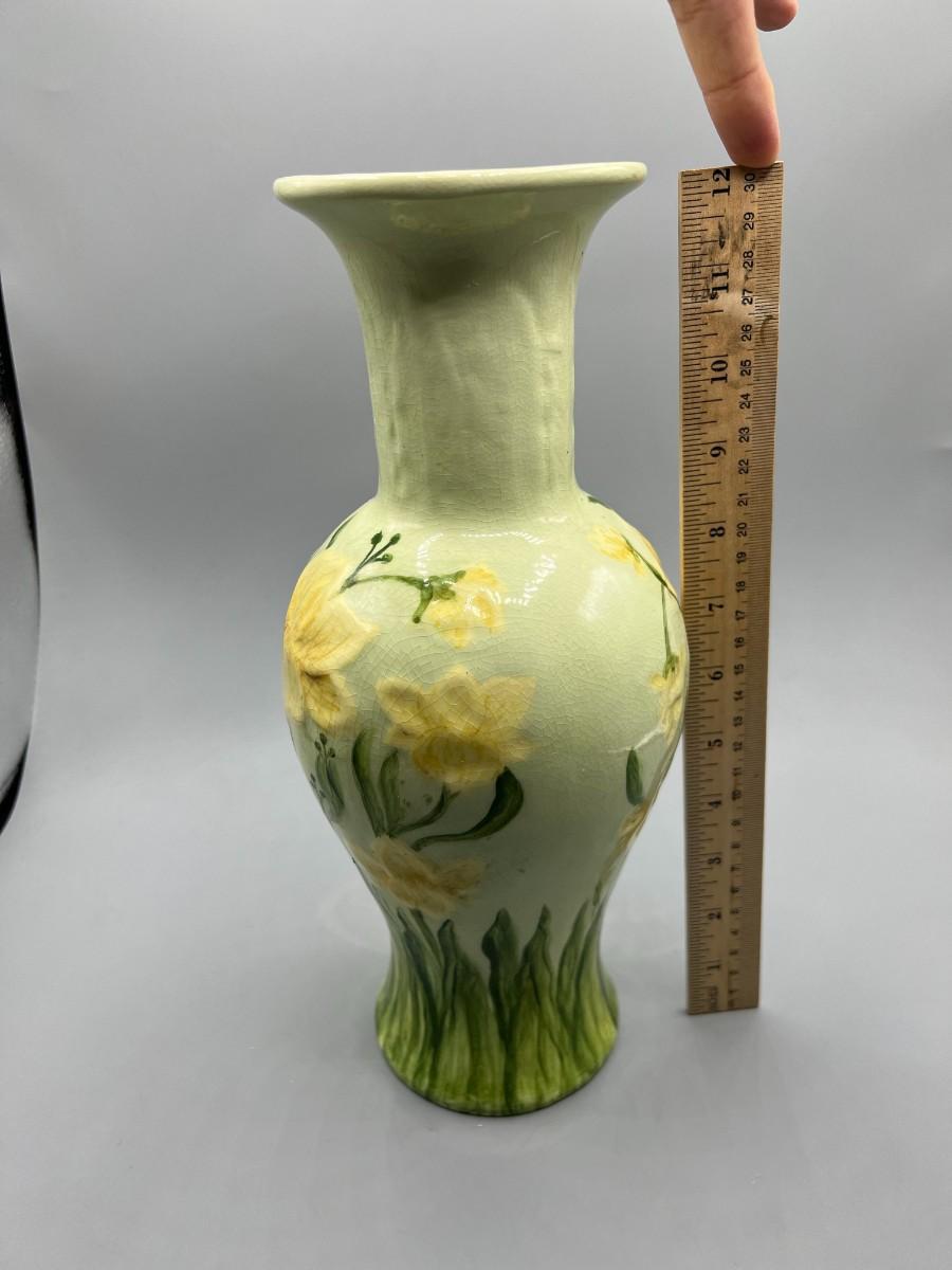 Retro Painted Ceramic Yellow Flower Foliage Flower Vase