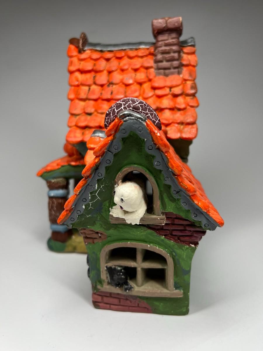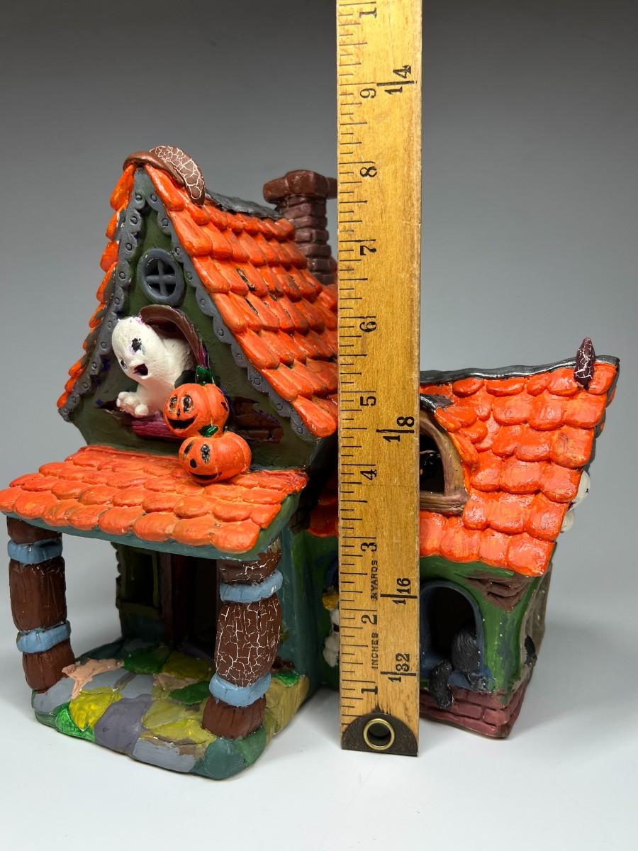 There is some light retro wear, but there is no significant damage to the haunted house and is in good displayable condition. Check pictures for more details and for sizing.