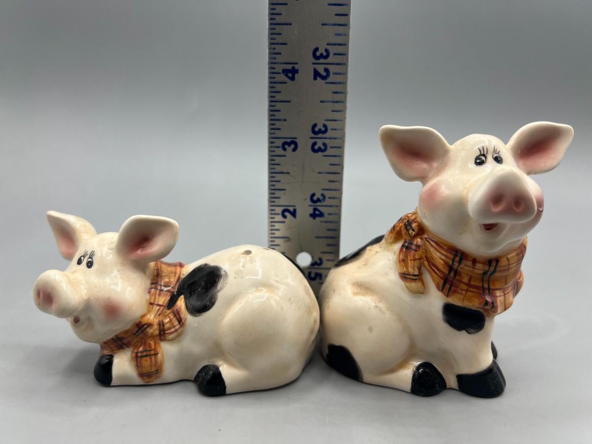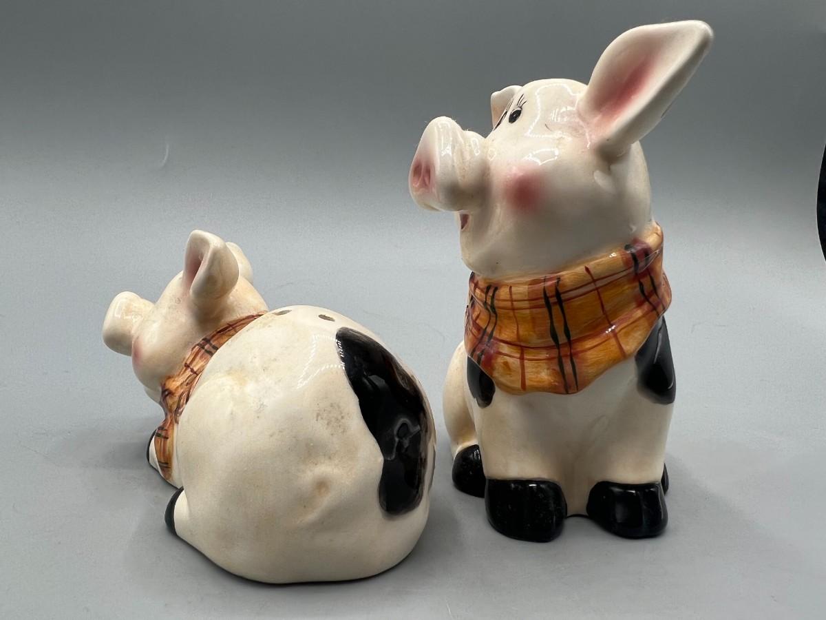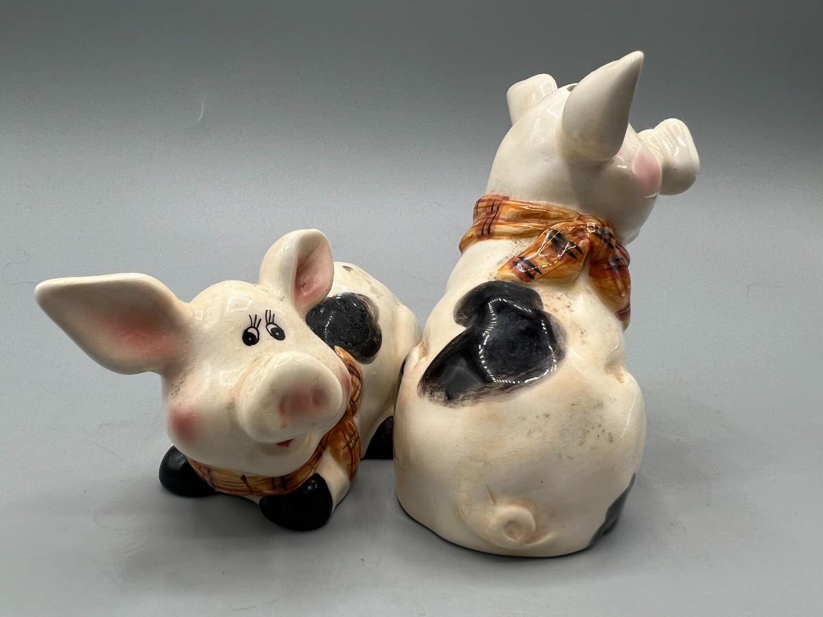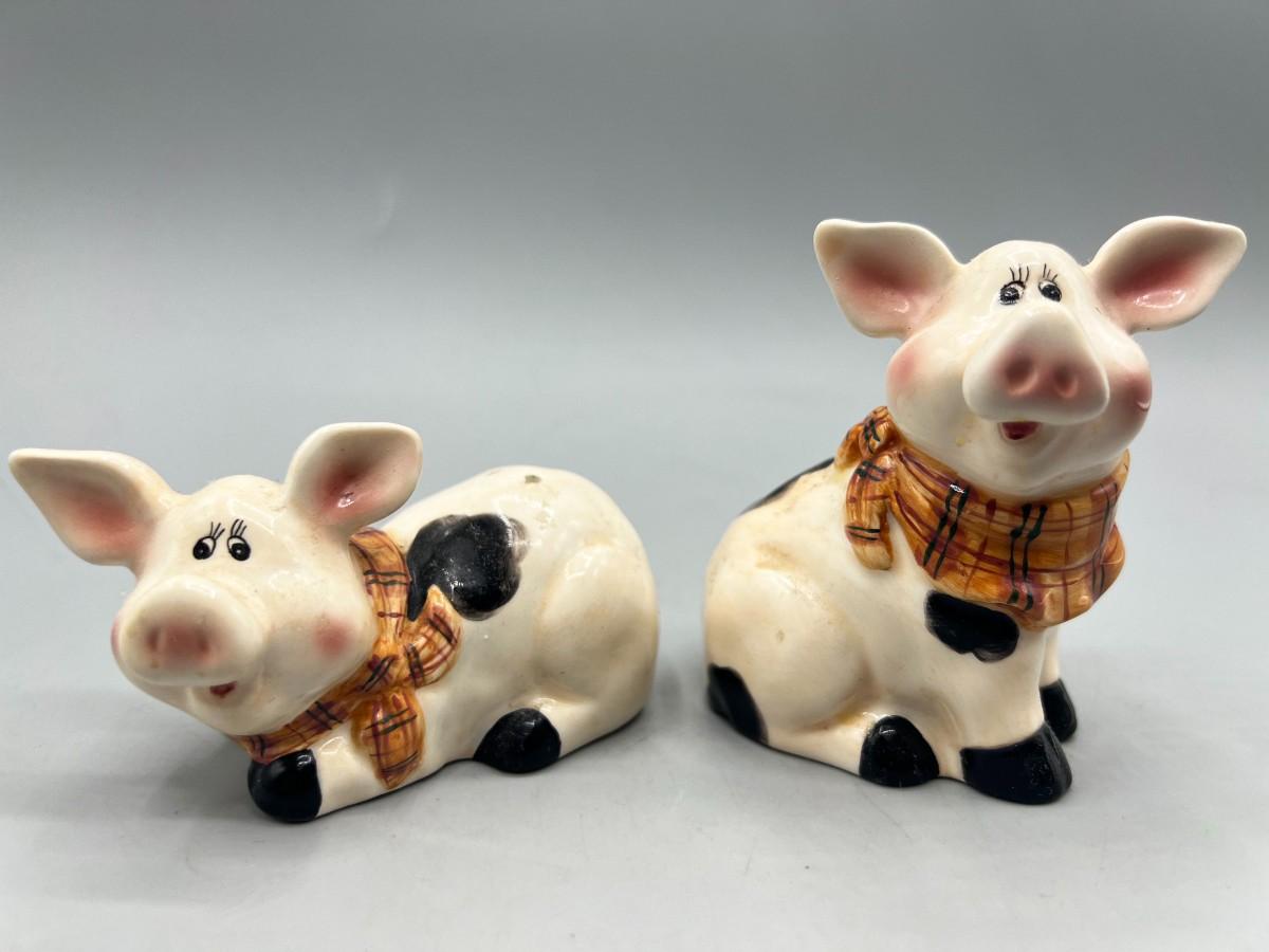 Retro Pair of Ceramic Happy Pigs Salt & Pepper Shakers