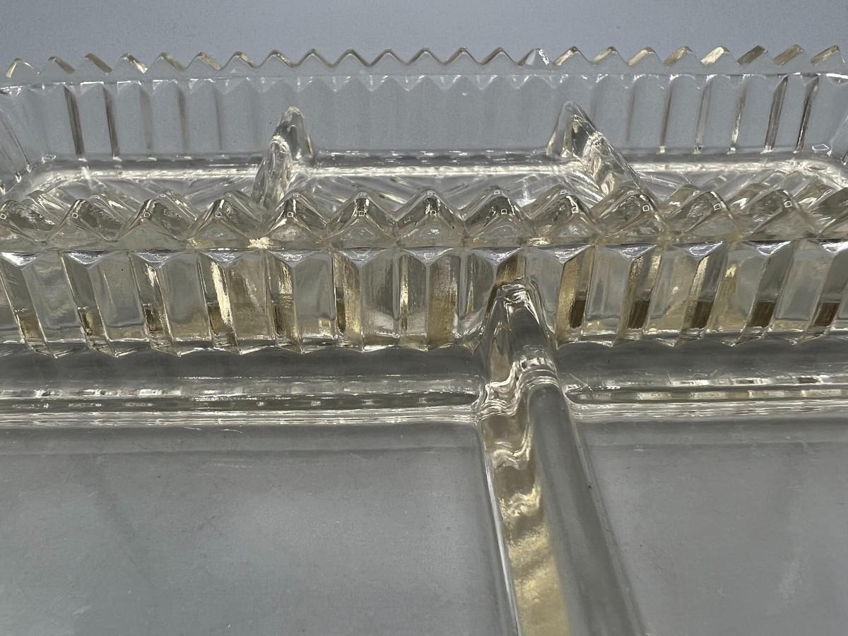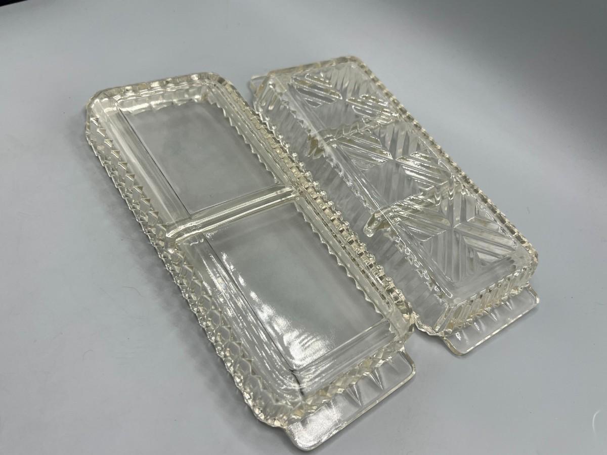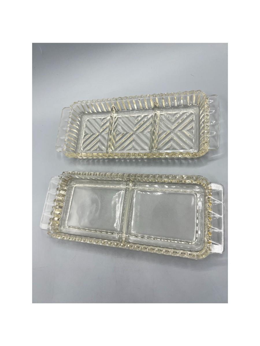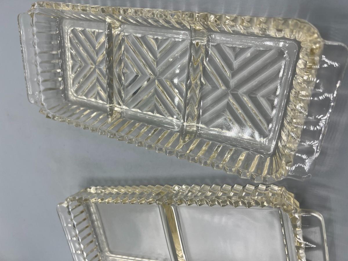 Retro Pair of Clear Glass & Textured Divided Relish Dishes