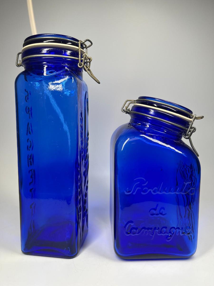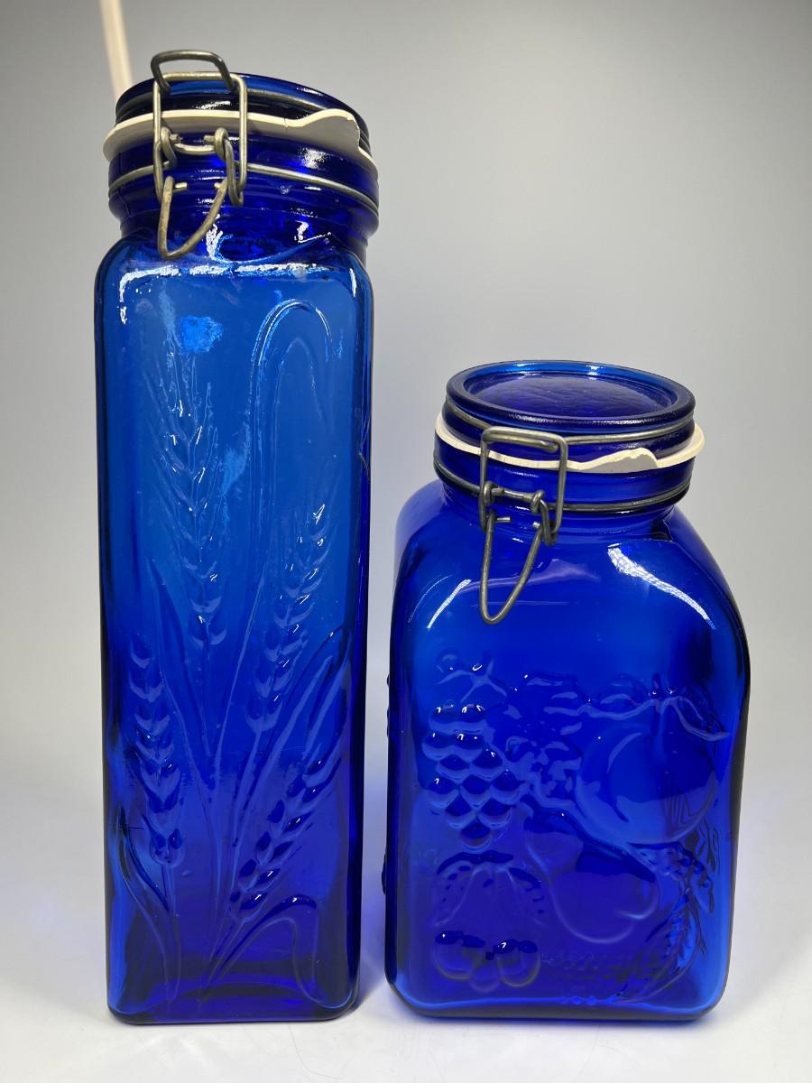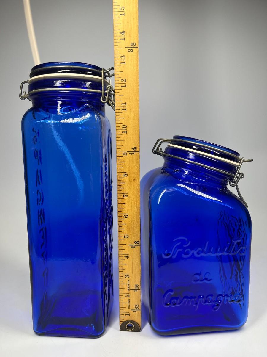 Retro Pair of Italian Made Sealing Lid Glass Ingredient Spaghetti Wheat Storage Containers, there is no significant damage to either of the containers and is in good useable and displayable condition. Check pictures for more details and for sizing.