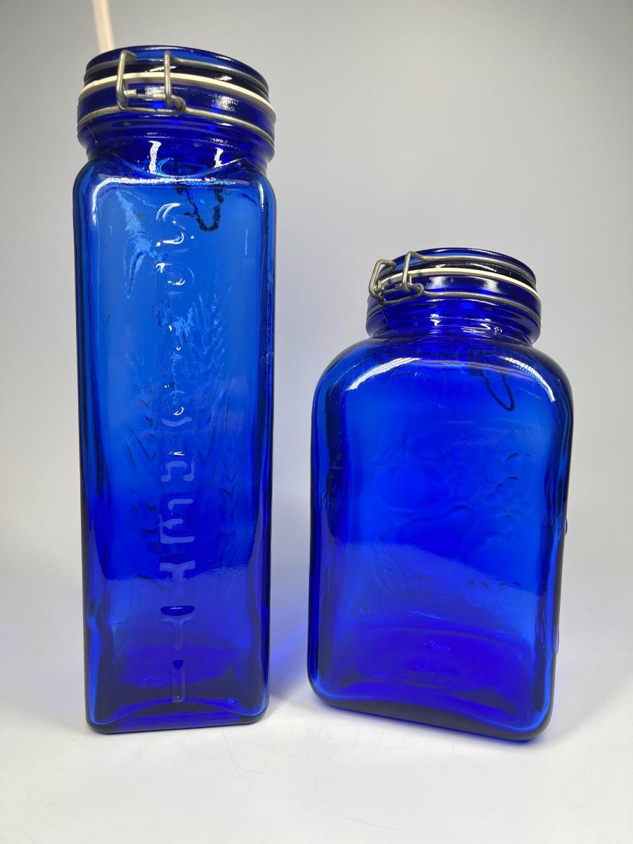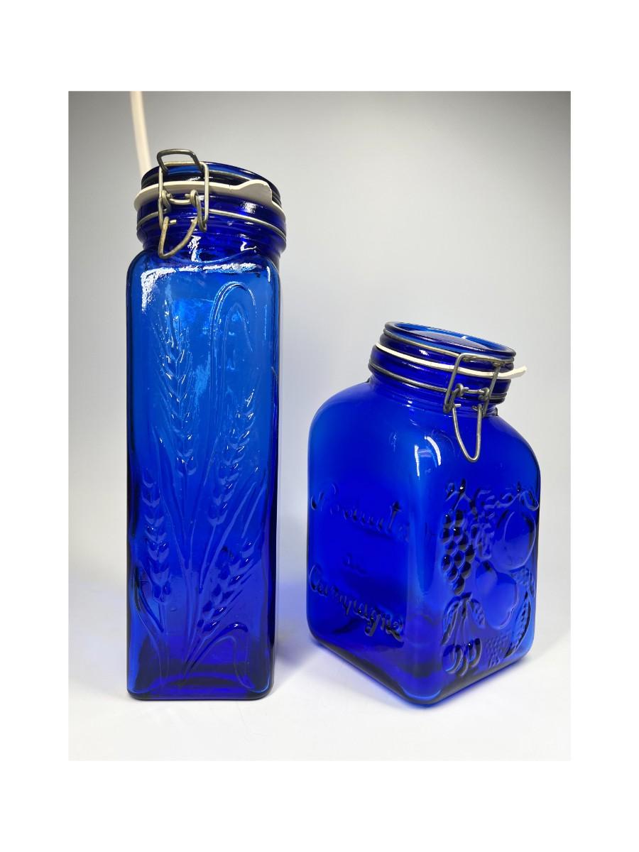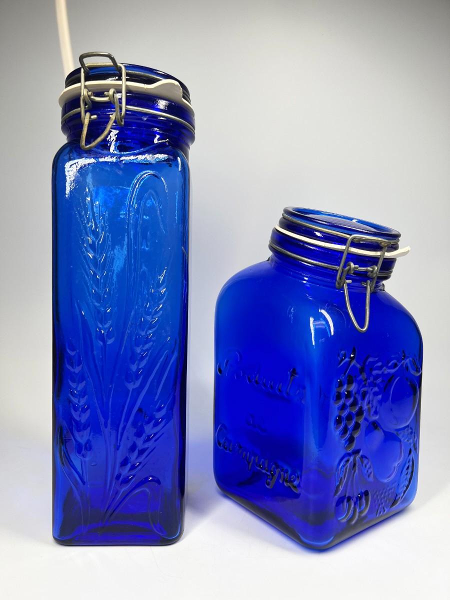 Retro Pair of Italian Made Sealing Lid Glass Ingredient Spaghetti Wheat Storage Containers, there is no significant damage to either of the containers and is in good useable and displayable condition. Check pictures for more details and for sizing.