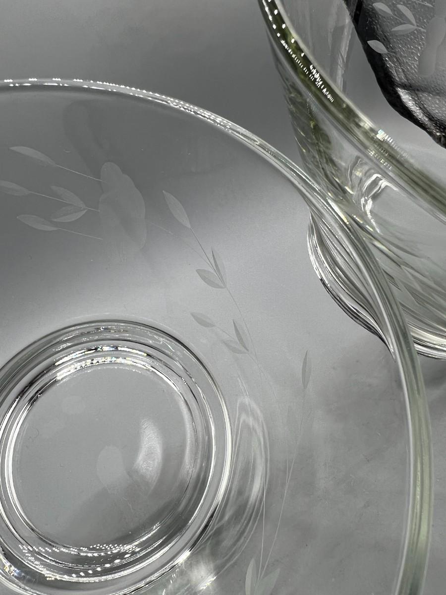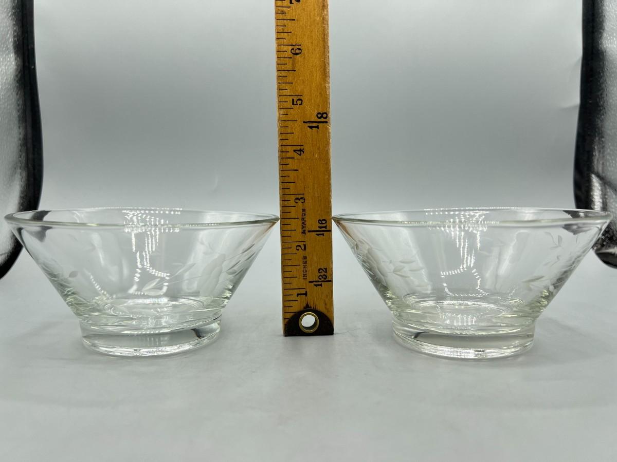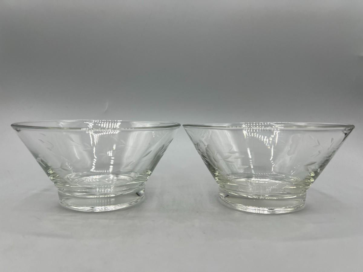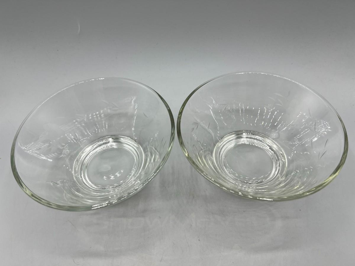 Retro Pair of Princess House Clear Glass Thin Floral Design Bowls