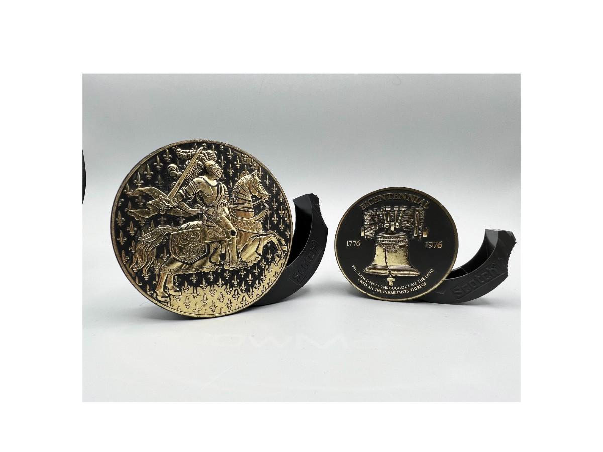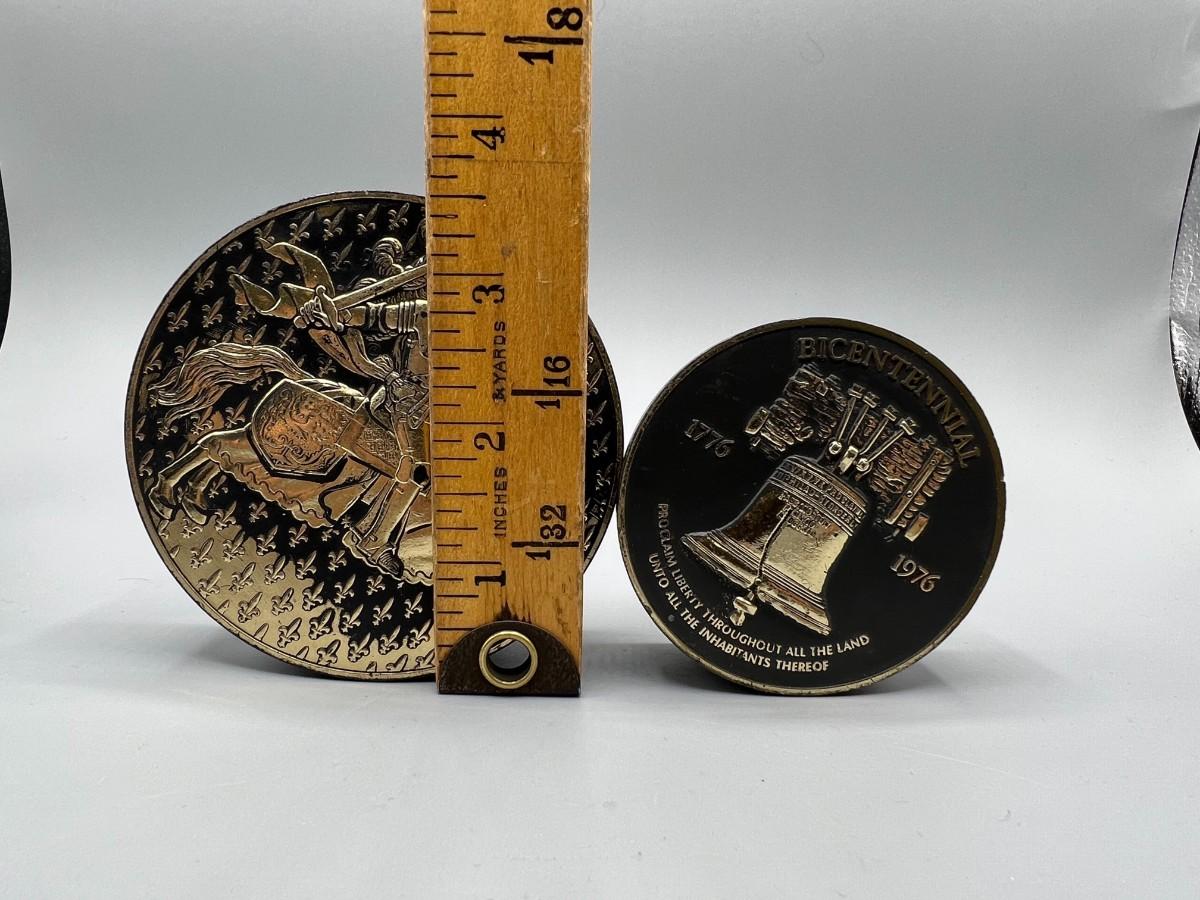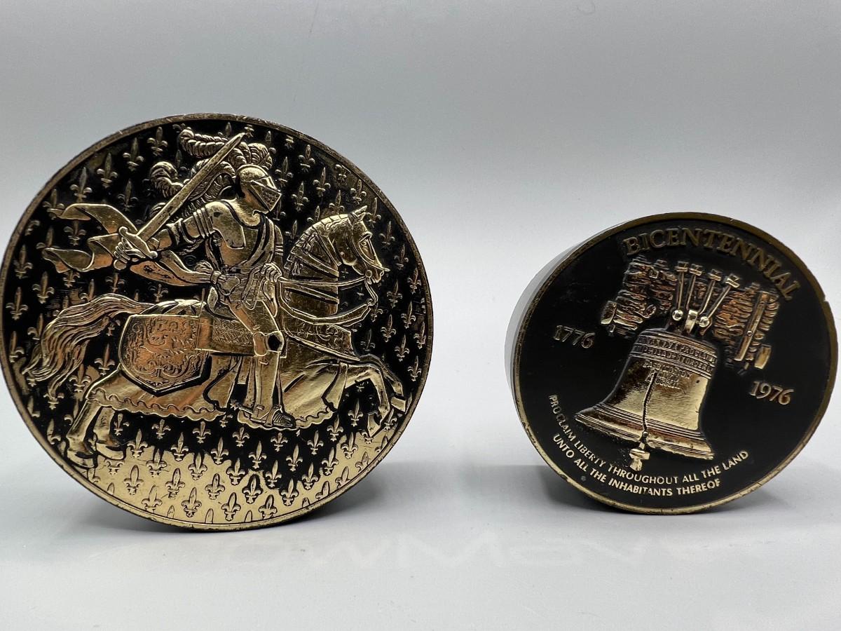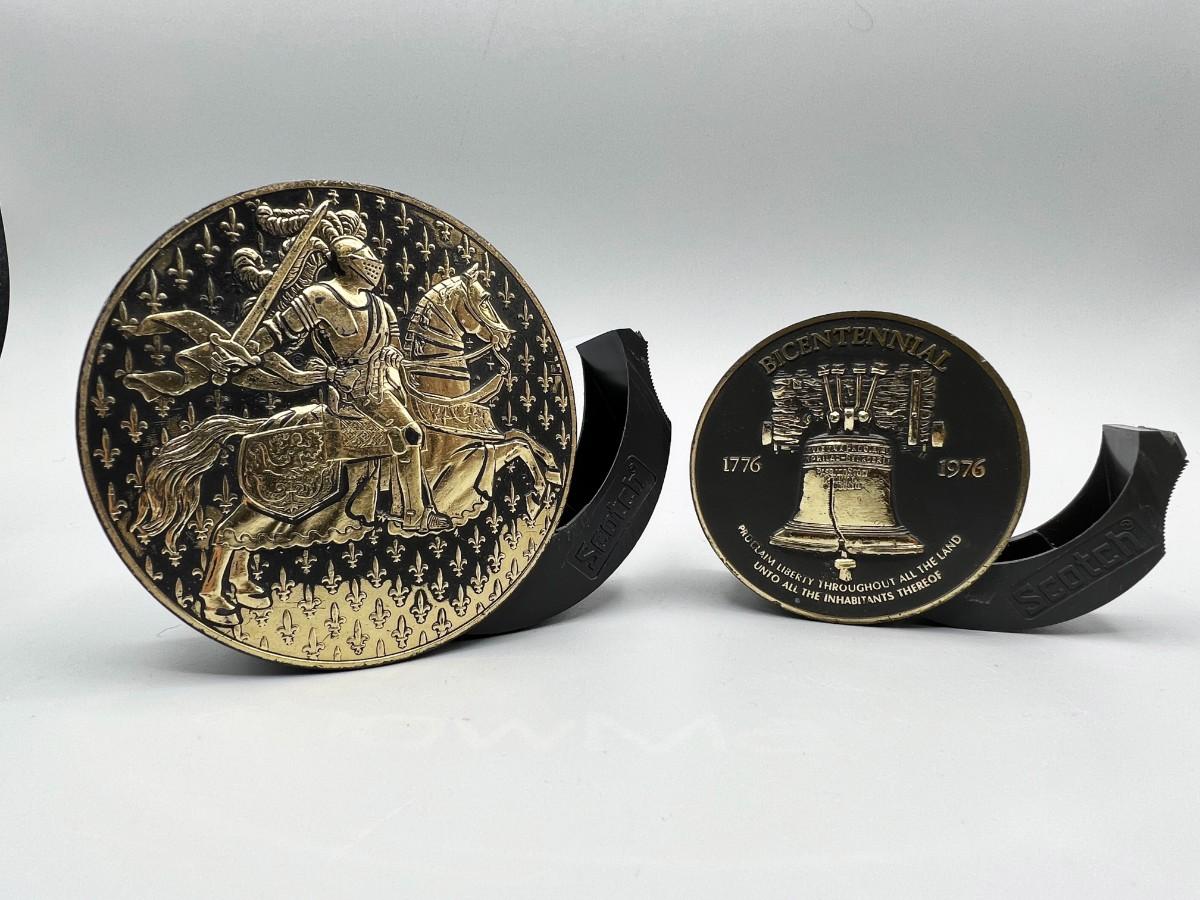 Retro Pair of Scotch Tape Refillable Dispensers Knight on Horseback & Bicentennial Liberty Bell
