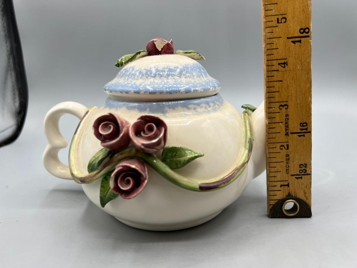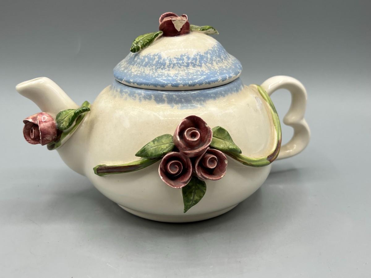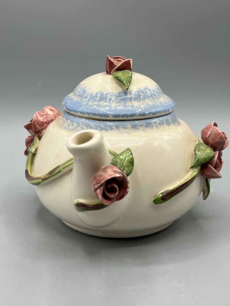 Retro Paper Windows Pottery Ceramic Art Roses Teapot