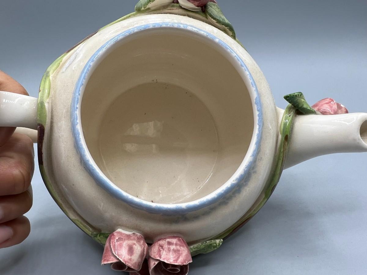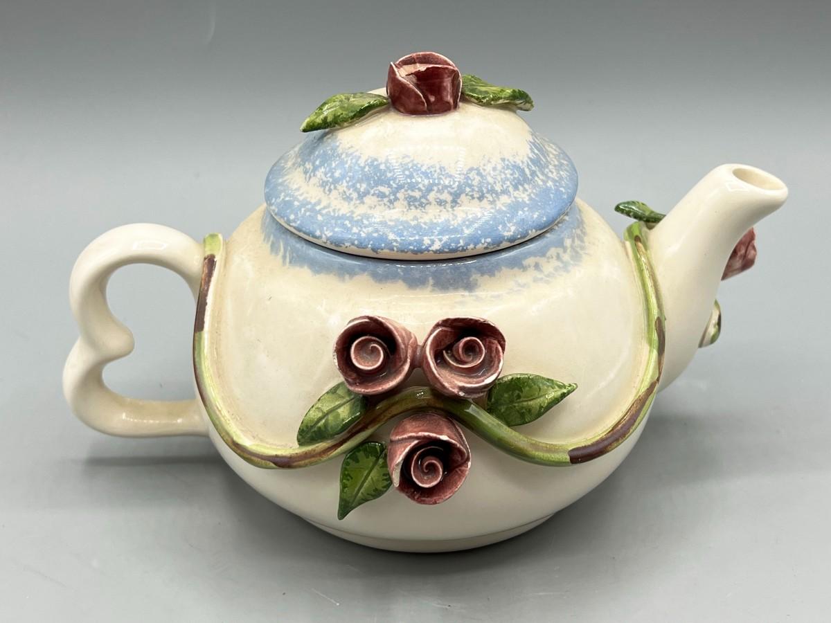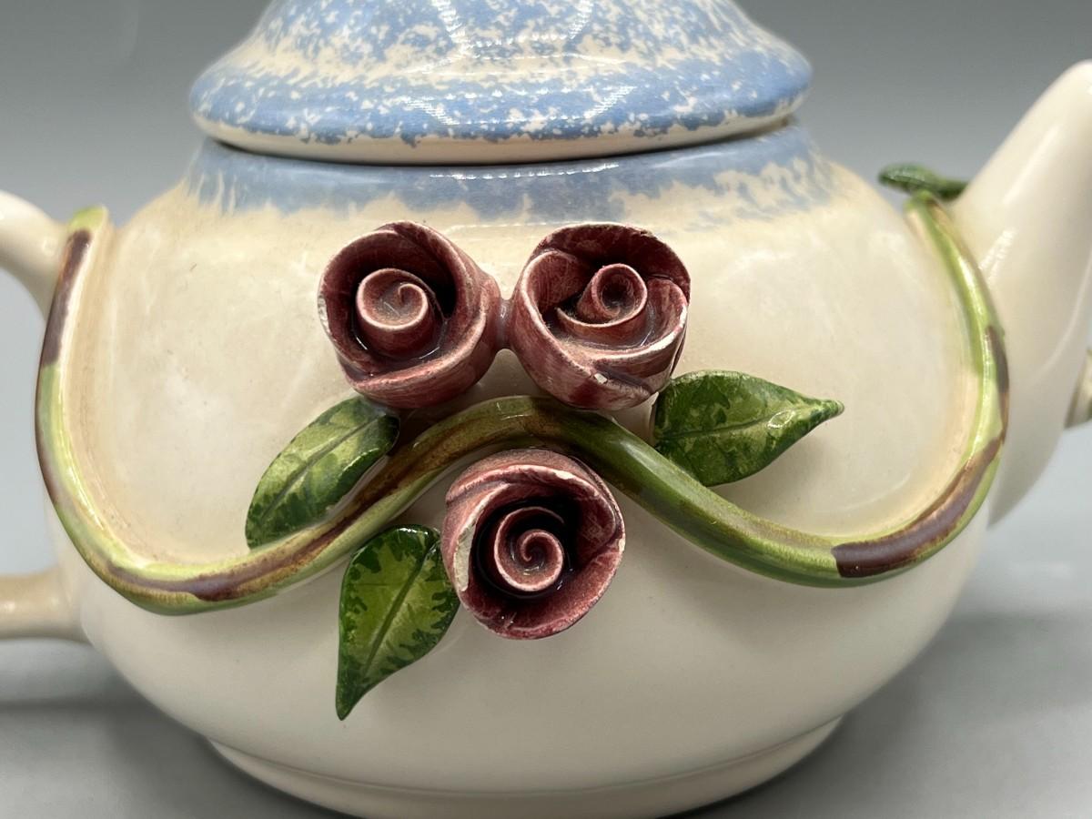 Retro Paper Windows Pottery Ceramic Art Roses Teapot