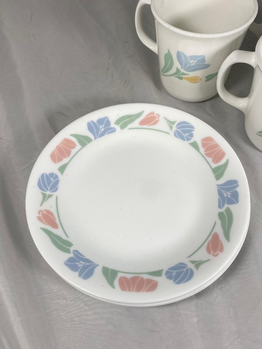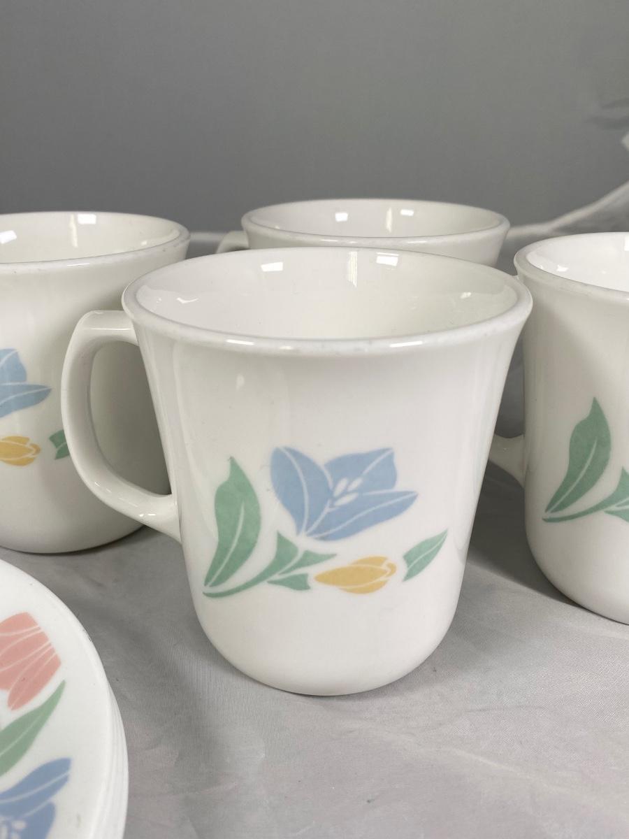 Retro Pastel Floral Corelle Coffee Cup Mugs & Small Plates