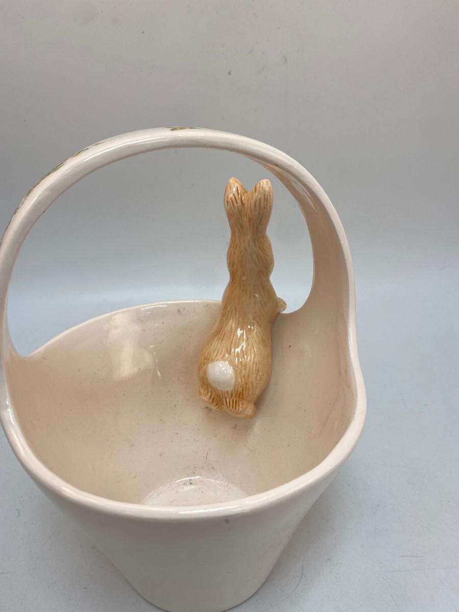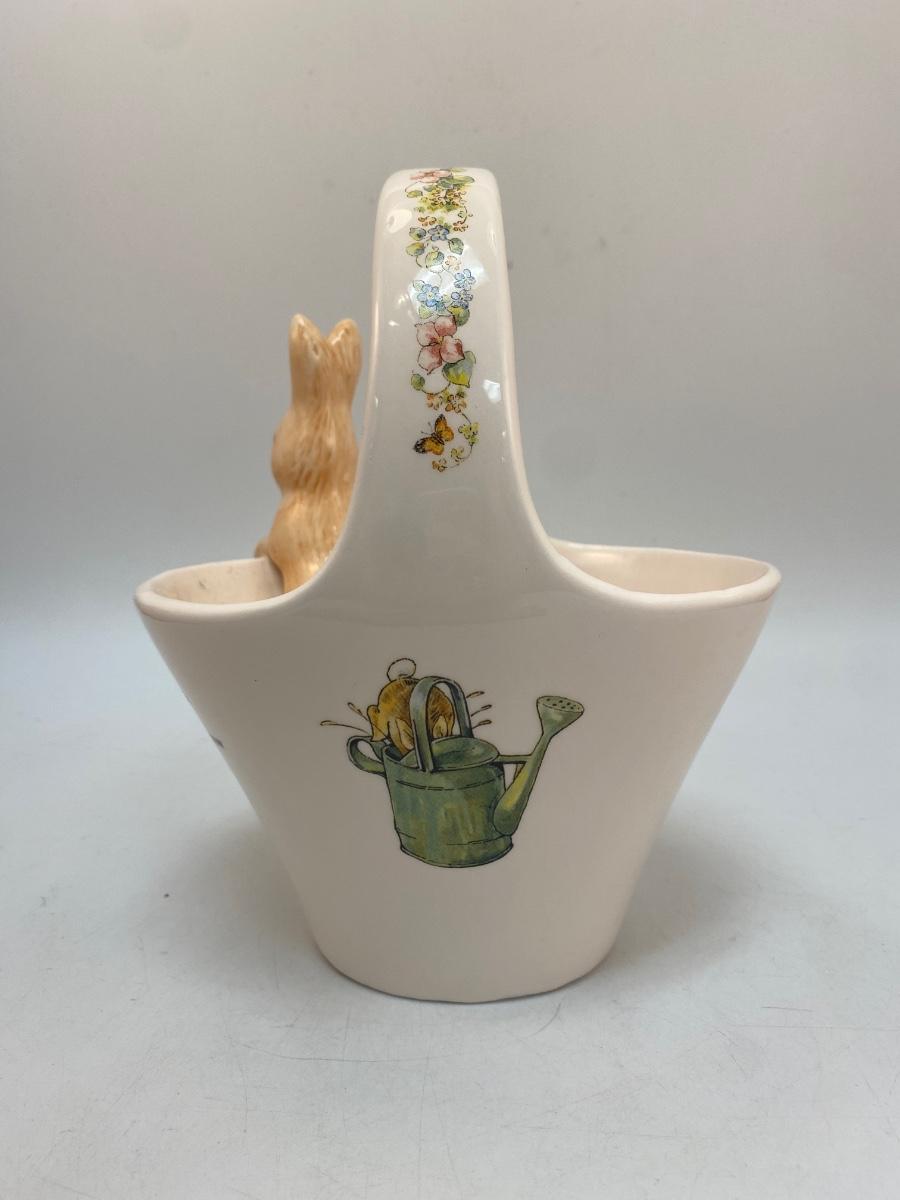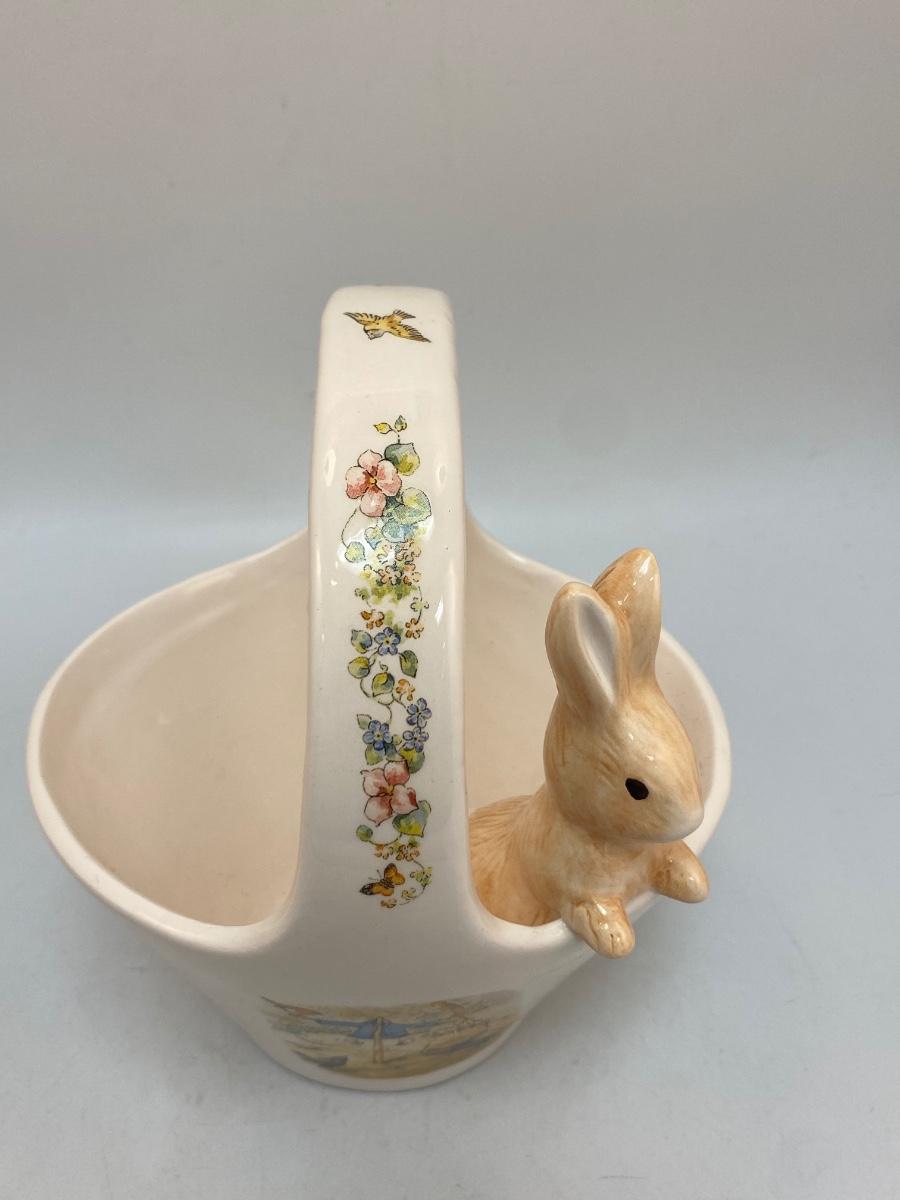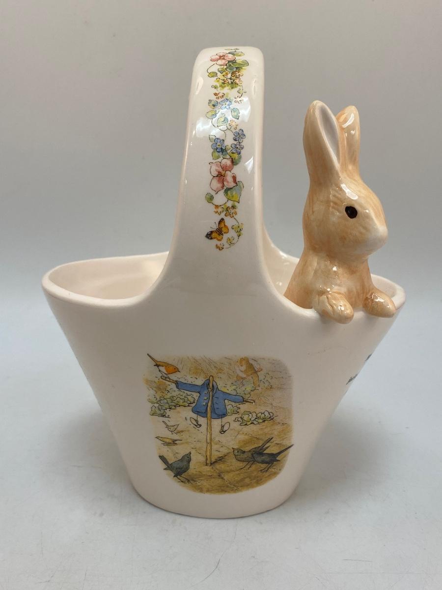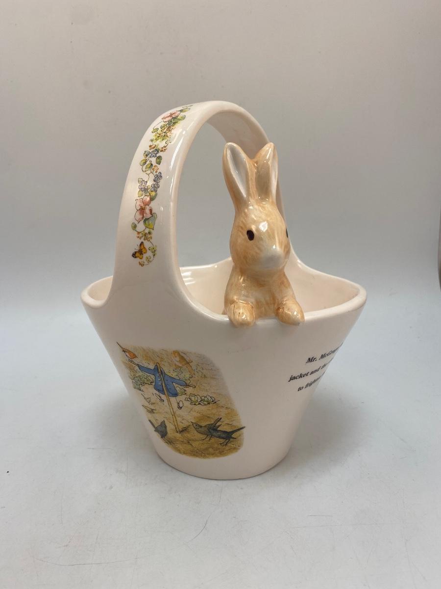 Retro Peter Rabbit Story Book Ceramic Basket Figurine