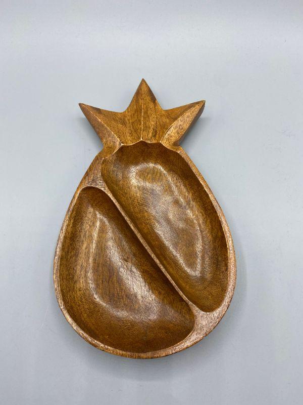Retro Pineapple Shaped Monkey Pod Wood Divided Dish YD#011-1120-00204