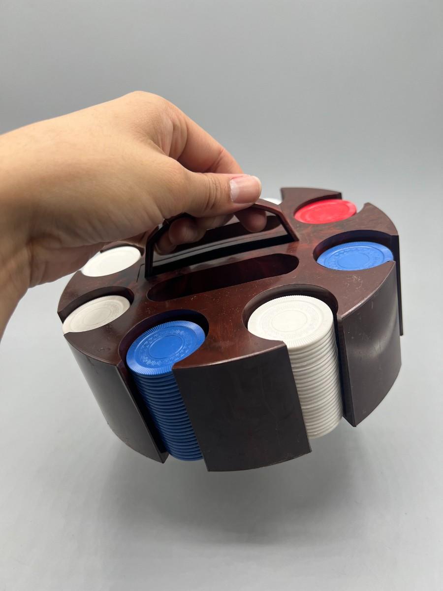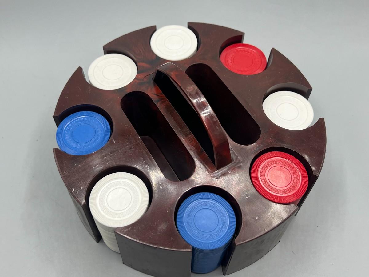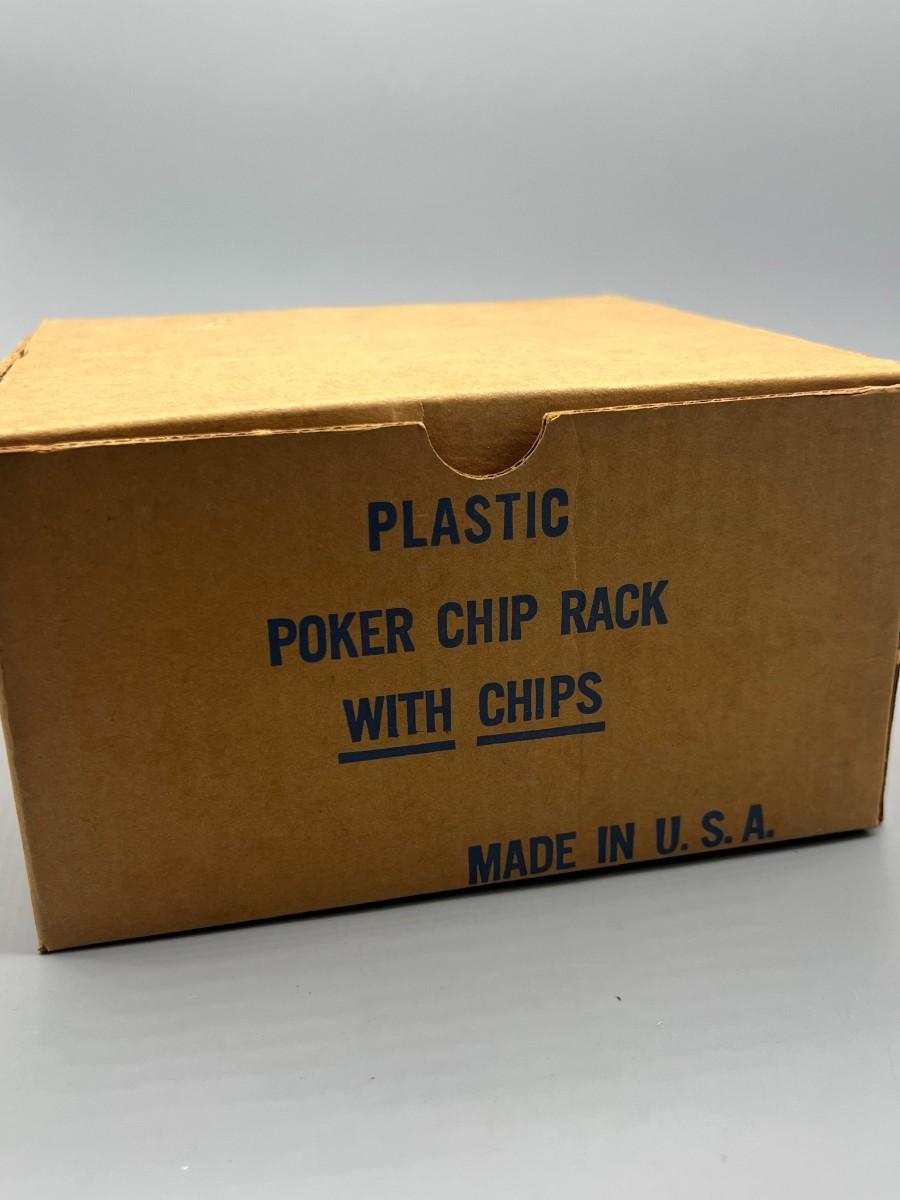 Retro Plastic Poker Chip Rack Caddy with Chips in Original Box