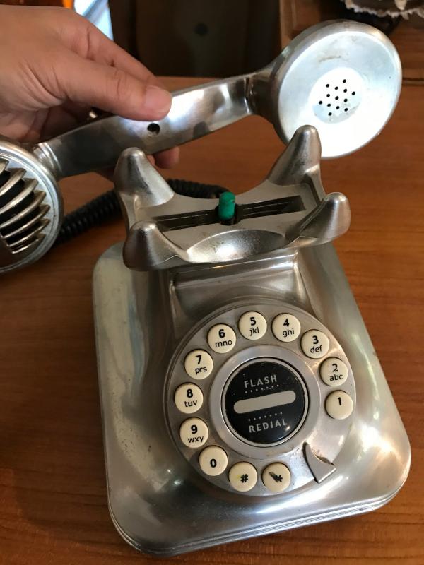 Retro Pottery Barn Rotary Telephone Phone Silver Metallic Finish [1116]