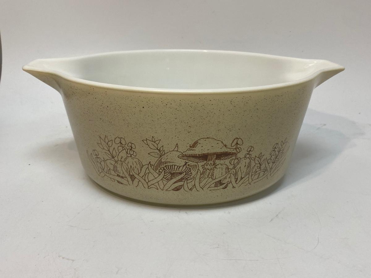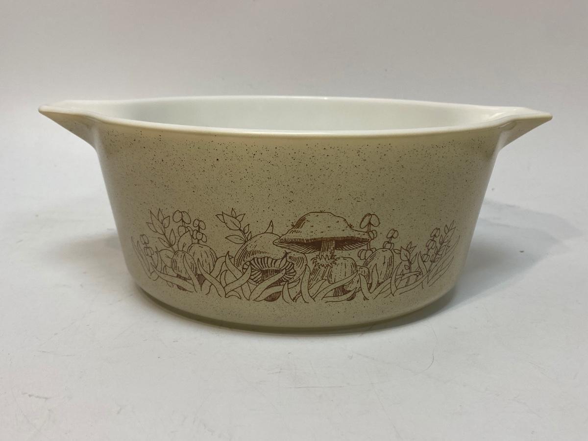 Retro Pyrex Forest Fancies Brown Mushroom Pattern 2.5qt Cinderella Bowl 475-B