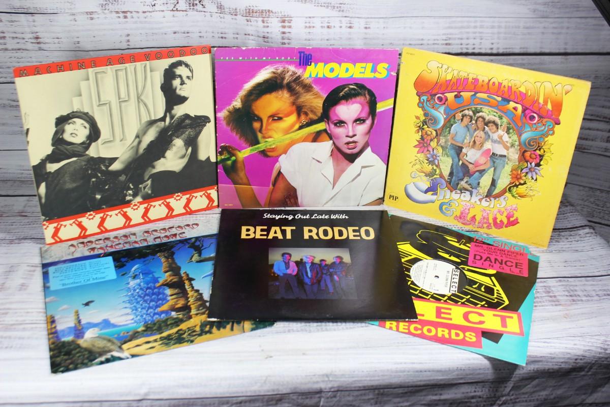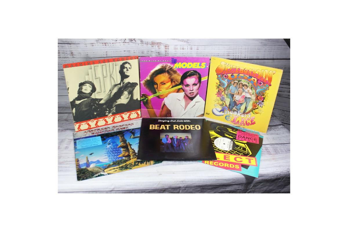 Retro Record Lot New Wave, Electronic Dance, & Rock, there is no sigicnant rips or tears to the record sleeves and is in good retro condtion. There is minimal to light wear to the albums, check pictures for more details and for sizing. Comes with the following records: SPK - Machine Voodoo, The Models - Yes with my Body, Sneakers & Lace - Skateboardin USA, Anderson Bruford Wakeman Howe, Staying Out Late with Beat Radio, Mr. Glenn Piper Your Dance 12" Single.