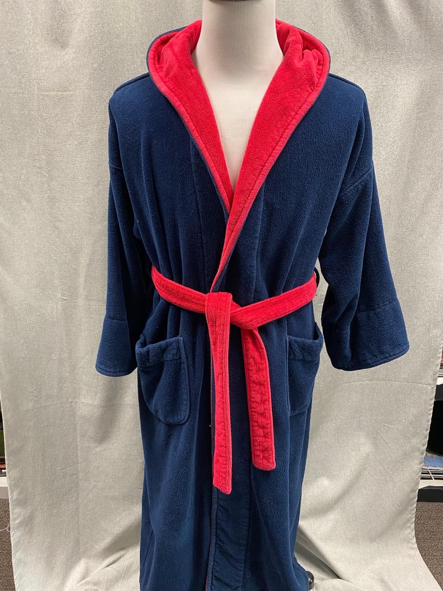 Retro Red & Blue Heavy Weight Terry Cloth Bath Robe with Hood