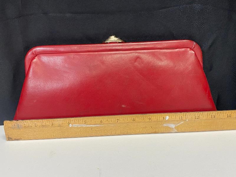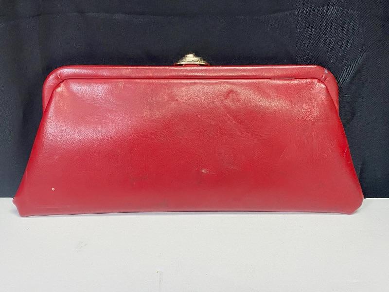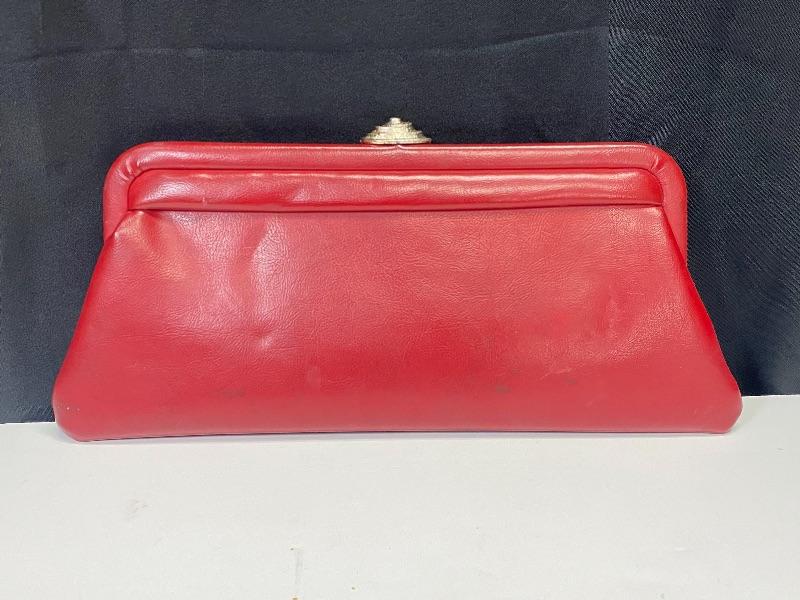 Retro Red Faux Leather Clutch Purse