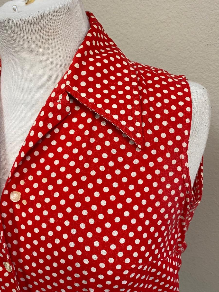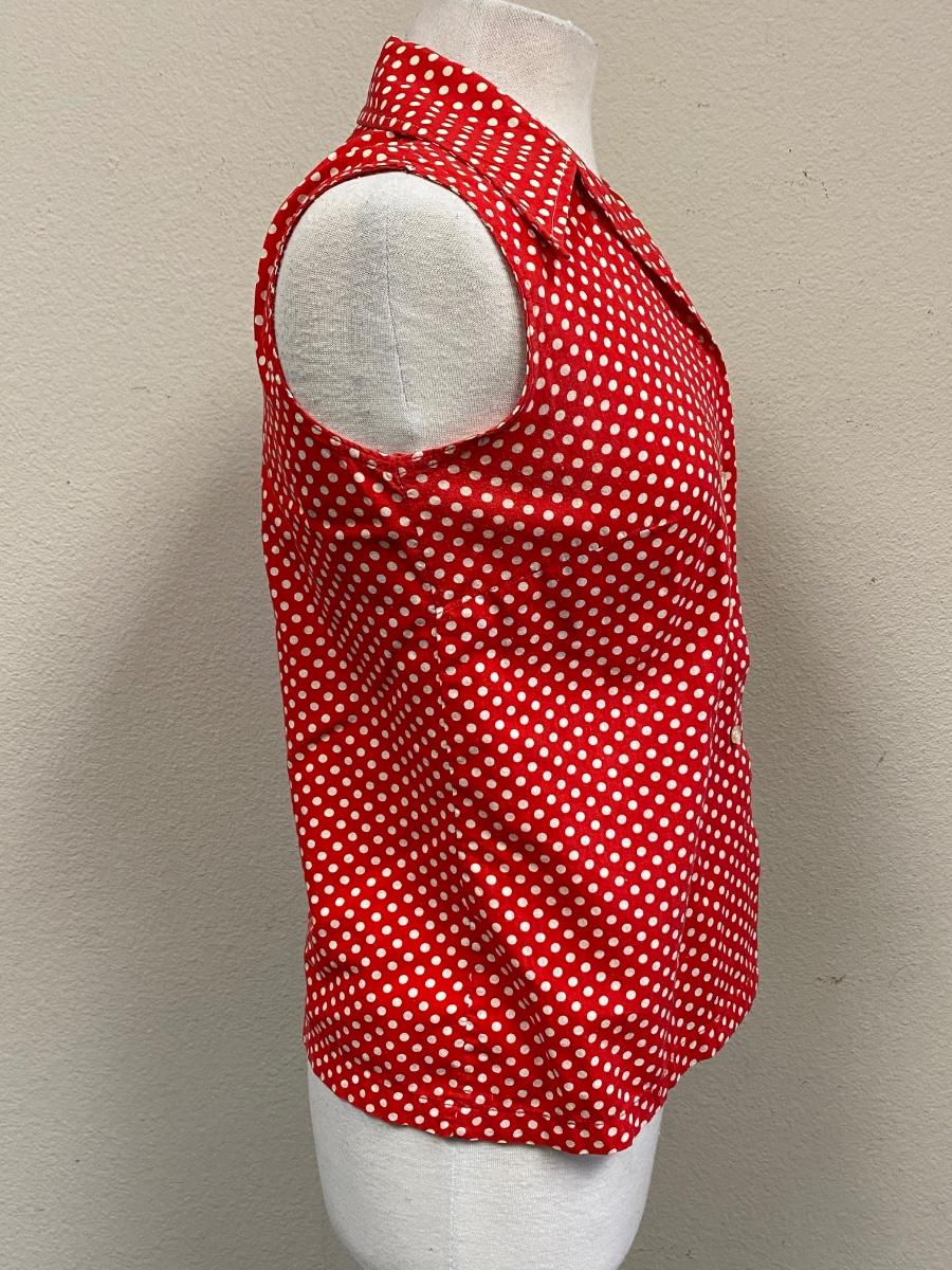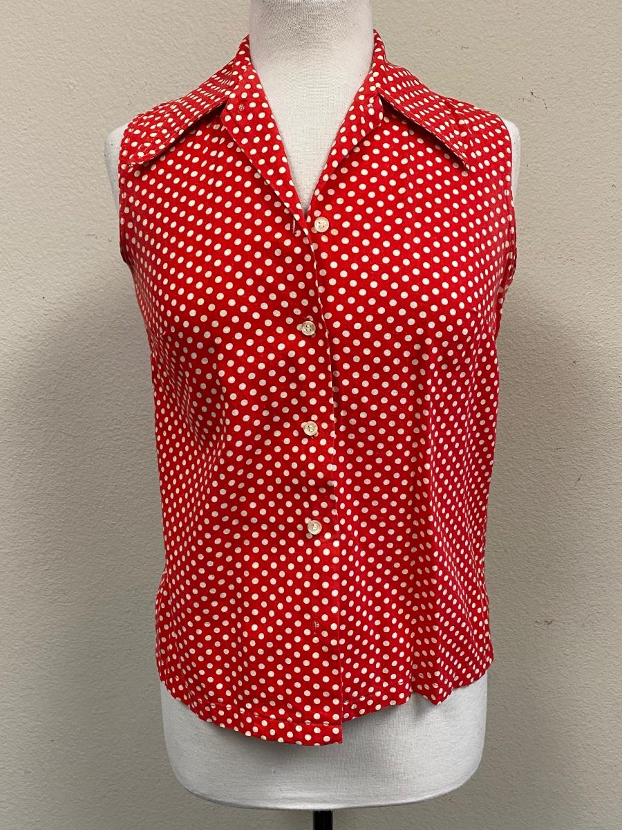 Retro Red with White Polka Dots Ship 'n Shore Sleeveless Button Front Blouse