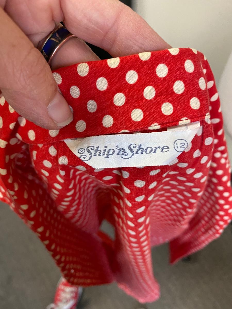 Retro Red with White Polka Dots Ship 'n Shore Sleeveless Button Front Blouse. In good condition. Size 12.