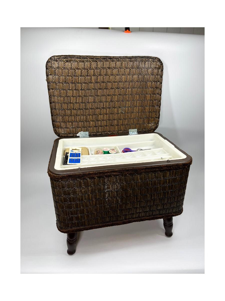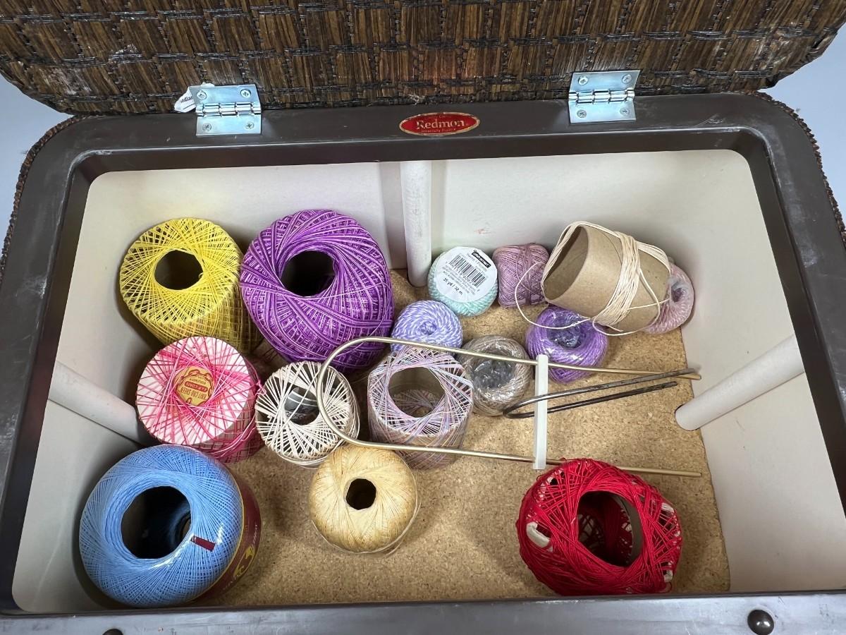 Retro Redmon Arts & Crafts Sewing Materials Storage Seat Stool with Yarn, Crochet Needles, Scissors and More