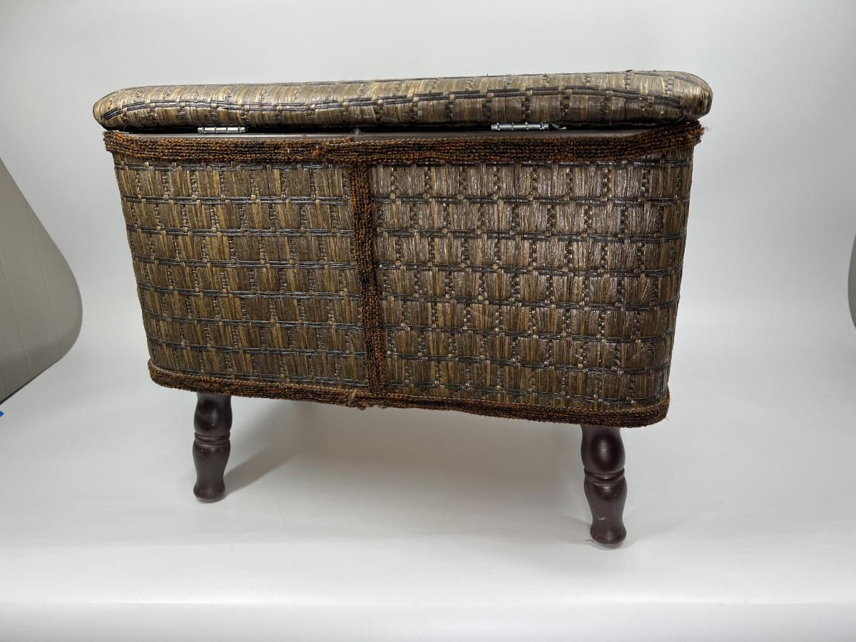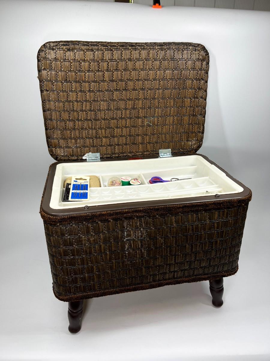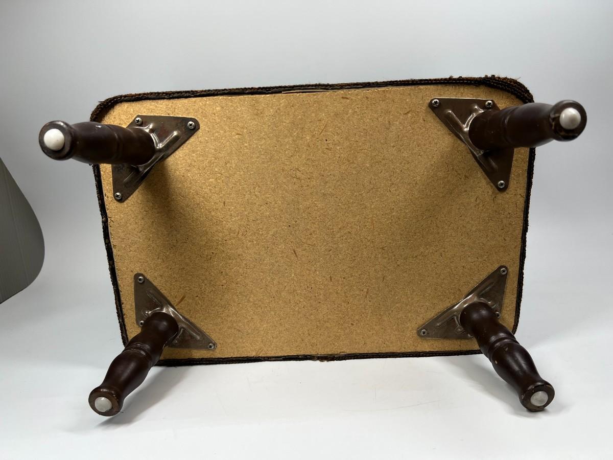 Retro Redmon Arts & Crafts Sewing Materials Storage Seat Stool with Yarn, Crochet Needles, Scissors and More, there is no significant damage to the stool and is in good useable condition. Check pictures for more details and for sizing.
