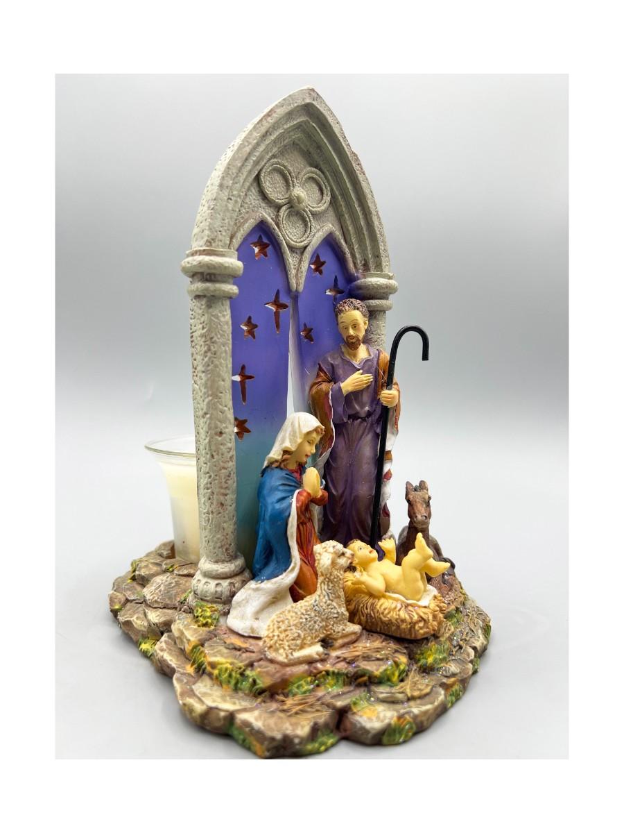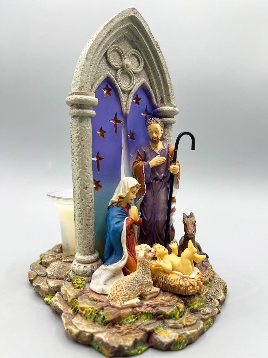 Retro Resin Christmas Decor Nativity Scene Candle Holder